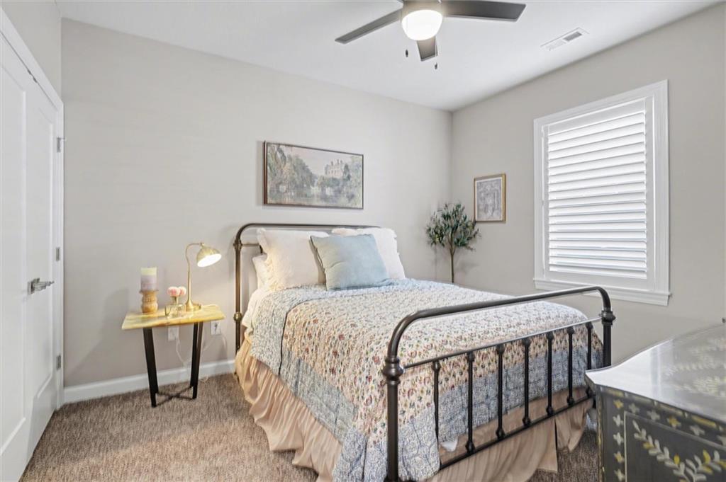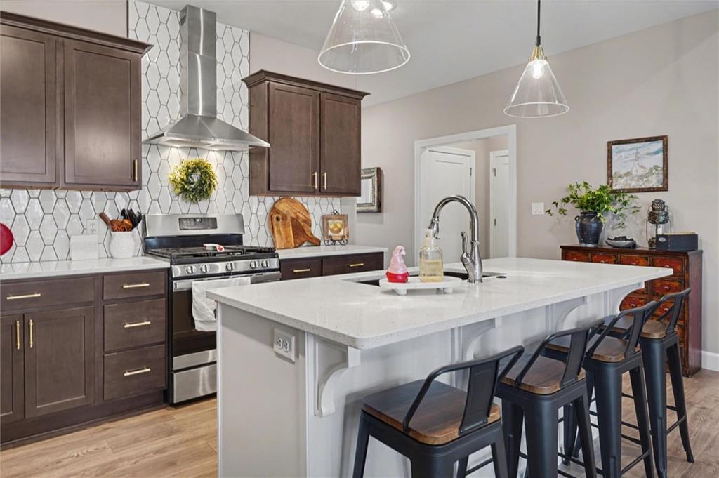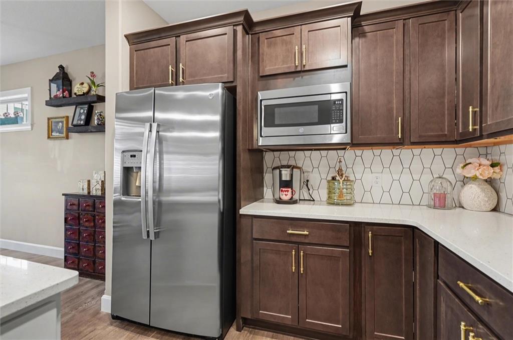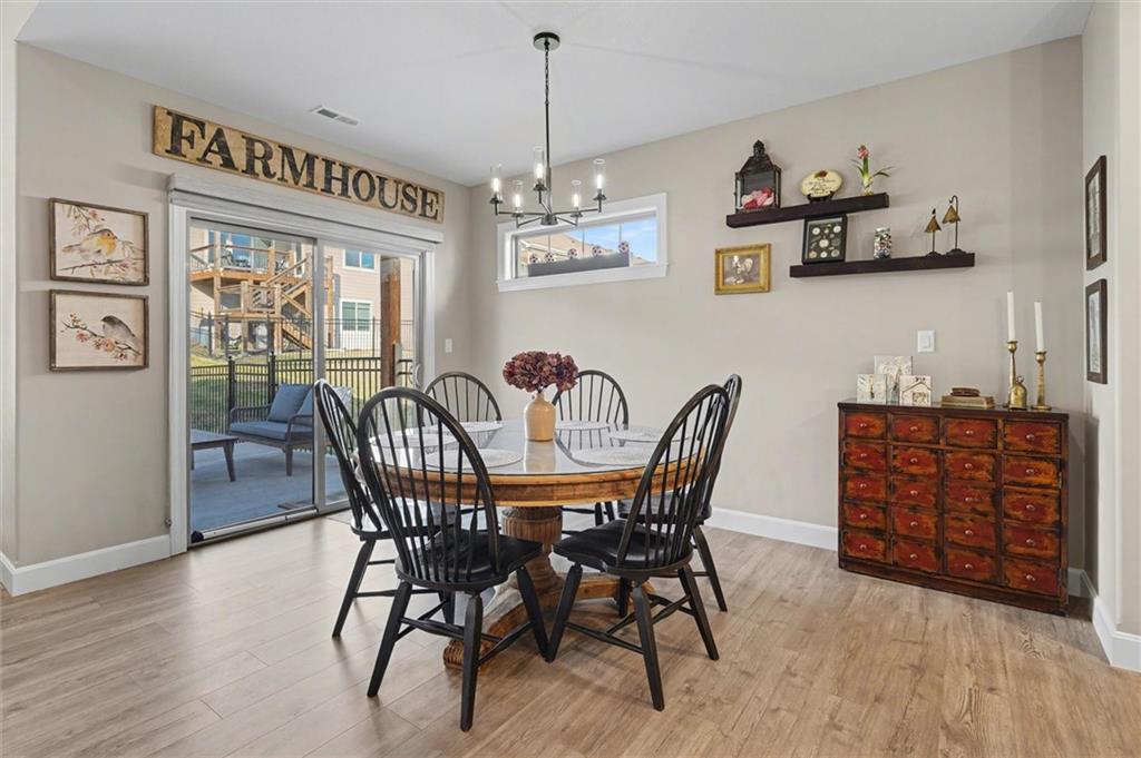 This home still feels new with all the upgrades in popular Hutton Farms. Plantation shutters, gas range, covered patio on the back with rocking chairs greeting you on the front. Drippe Construction created this open concept floor plan with high vaulted ceiling and cross beams. Master closet flows through to the laundry room. Gated community with HOA that covers snow removal of streets, lawn care and sprinkler system. Homeowner responsible for grass inside of the fence.