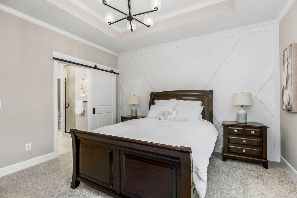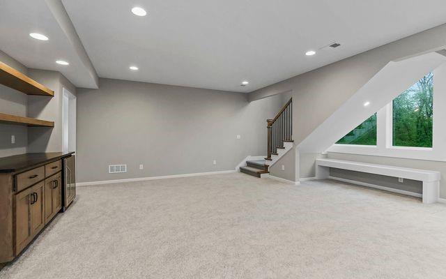 The Tatum Reverse by New Mark Homes Kc sits on lot 7 in Southern Meadows. Stunning reverse plan on a quiet cul-de-sac lot! This home is a true showstopper from the moment you arrive, welcoming you with its charming front porch and beautiful curb appeal. The thoughtfully designed layout offers exceptional privacy, with the primary suite located on the opposite side of the home from the secondary bedroom. The great room and kitchen are filled with natural light, creating a warm and inviting atmosphere. The spacious kitchen features a large center island, perfect for entertaining or everyday living. Step outside to the oversized covered deck — the perfect setting for hosting a girls’ night or enjoying a relaxing evening outdoors. The finished lower level is designed for fun and functionality, offering two additional bedrooms and a generous recreation room ideal for football watch parties, complete with a convenient back bar for easy entertaining. Home is currently at Mechanical stage and approximately 120 days out.
