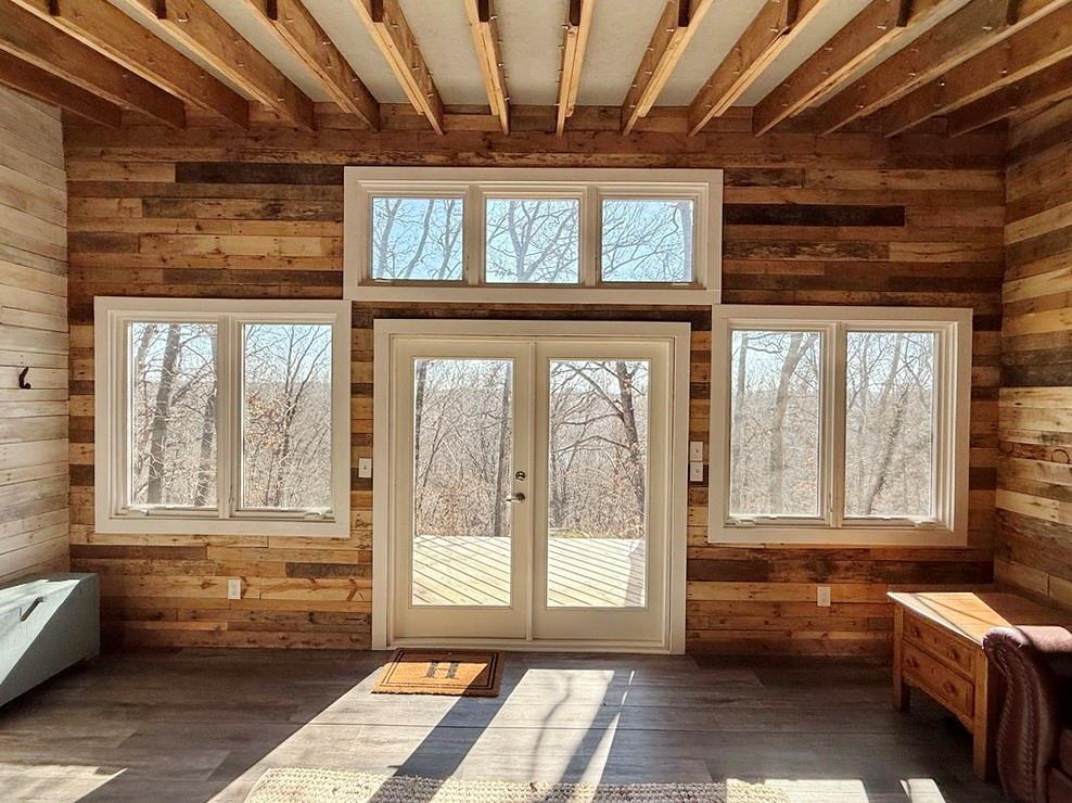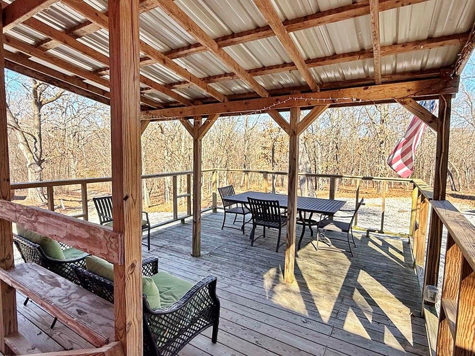 Complete Recreational Package: Land, Cabins, River, Trails, Hunting, Fishing. For sale just 3 miles west of El Dorado Springs, MO in Vernon County, is this 135-acre tract of the most prime recreational property around. This farm boasts 1.2 miles of Clear Creek frontage, scattered food plot fields on the south, timbered ridges on the north, and lush creek bottoms with a wetland slough that can be improved for duck hunting. The ~3-mile trail system on this property is fantastic with quick and easy access for ATV, UTV, and trucks. There are 2 cabins on the property. The first cabin is set at the main gate and is a 16’x24’, single room cabin with a kitchen, bathroom, and sleeping area. The cabin also has an outdoor shower, 14’x16’ covered deck, circle drive, firepit area, and 15’x20’ storage building with a 14’x20’ attached lean-to. The property is improved with rural (public) water, electric, small septic, and fiber internet (available). The second cabin is completely off-grid, sits on the northwest corner of the property, and is primitive in nature. The setting is on a bluff above Clear Creek surrounded by hardwood trees. This cabin is 16’x20’ with a large deck and firepit area. It showcases 1 large room with a kitchenette area, living room, wood stove, bathroom, and large-window views. A small solar system provides the electrical needs, and water can be hauled in for use. If you want a secluded cabin with an adventure, this is the place! Recreational properties with this location and improvements are rare to find, so call today to set up your private tour!