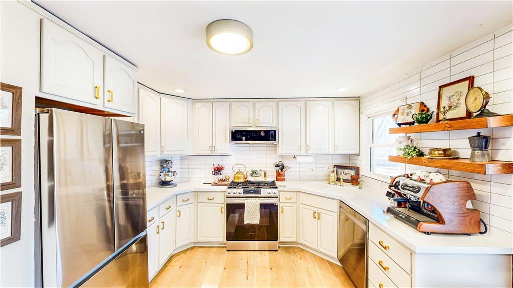 Recently featured on HGTV’s House Hunters, this charming 3-bedroom, 2-bath home offers 1,179 square feet in one of Overland Park’s most desirable and walkable locations, just minutes from Downtown Overland Park. The home features a functional single-story layout with a bright, open kitchen and dining area that flows seamlessly into the main living space. Natural light fills the home throughout the day, creating a warm and inviting atmosphere suited for both everyday living and entertaining. The kitchen connects directly to the dining area and covered outdoor deck, creating a seamless indoor-outdoor layout that’s perfect for hosting or relaxing evenings outside. Stainless steel appliances provide a clean, updated finish while maintaining the home’s welcoming feel. Both bedrooms offer ample space for king-sized beds, a rare and highly desirable feature for homes of this size. The flexible layout provides options for comfortable bedrooms, guest rooms, or a home office. Outside, the fenced backyard offers privacy and usable outdoor space. Additional features include a covered carport, large driveway, and two spacious storage sheds that provide excellent storage and functionality. Located near the revitalizing Downtown Overland Park district, the home offers convenient access to restaurants, local shops, parks, and community events as the area continues to expand and attract new investment. Whether you’re a first-time buyer, downsizing, or looking for an investment in a strong Johnson County location, this home offers both convenience and long-term potential.