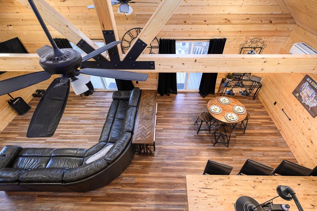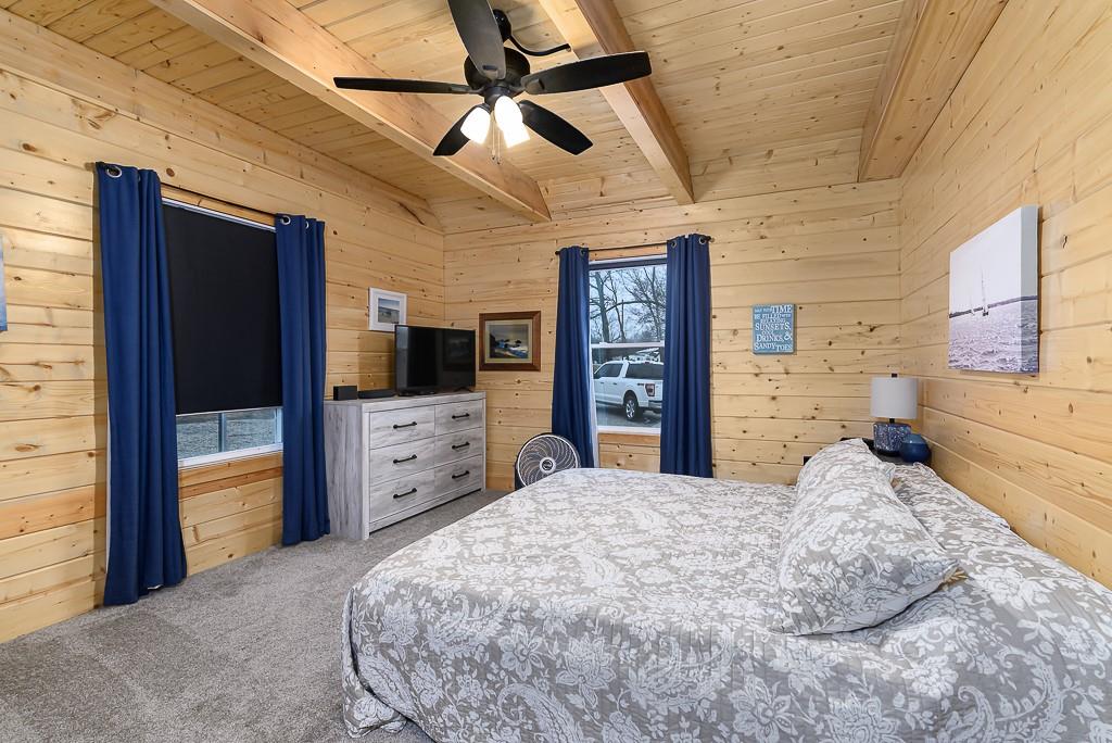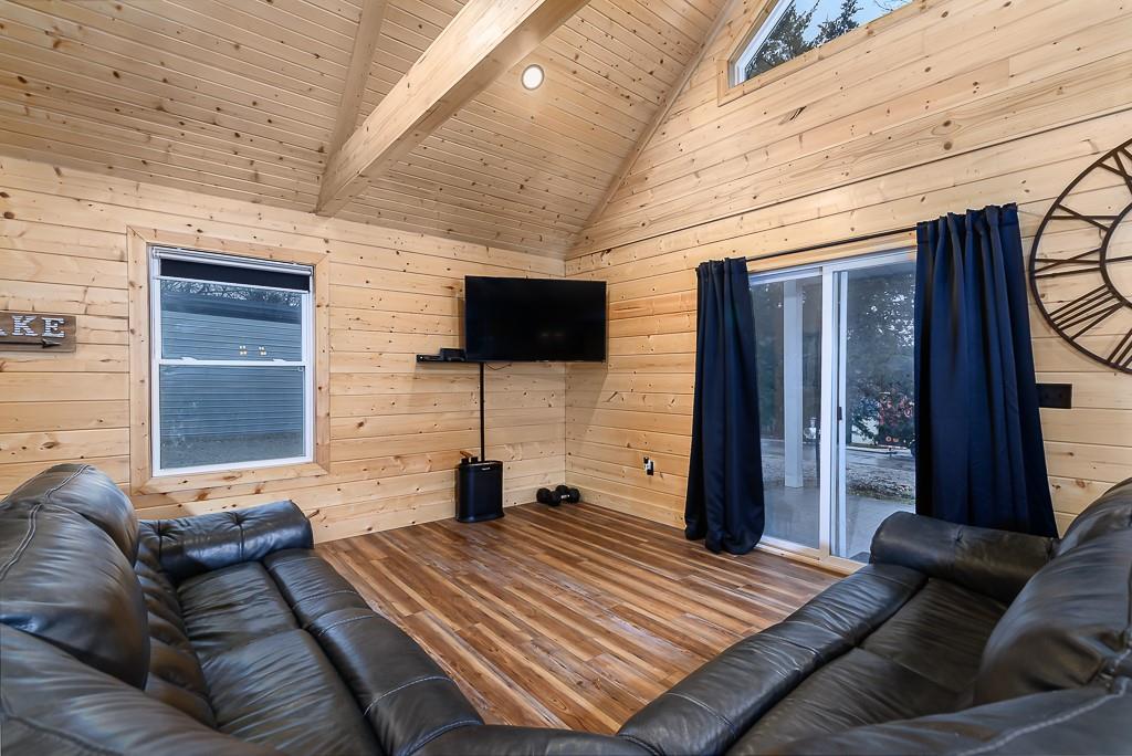 BEAUTIFUL 2-BED 1-BATH LAKE HOME ON DOUBLE LOT WITH BIG GARAGE FOR YOUR BOAT OR RV! This move-in ready getaway comes fully furnished and includes all appliances, so you can start enjoying the lake right away. Inside, you’ll love the hardwood floors and rustic wood walls, ceilings, and beams in the vaulted spaces, plus a cozy open living area with a loft bedroom that looks out over the main room. The covered front porch is a great spot to relax after a day on the water. Outside, there’s a 16x28 carport and a 28x40 metal garage that’s perfect for storing your boat, RV, or lake toys. The gated community offers 2 pools, putt-putt course and golf course and clubhouse. Plus it is a pivate lake, no registration for fishing or boating! The home sits on a double lot with second-tier lake access and is just a short walk to the water, giving you the lake lifestyle without the lakefront price. This is an easy, low-stress lake place ready for weekend fun or full-time living.
