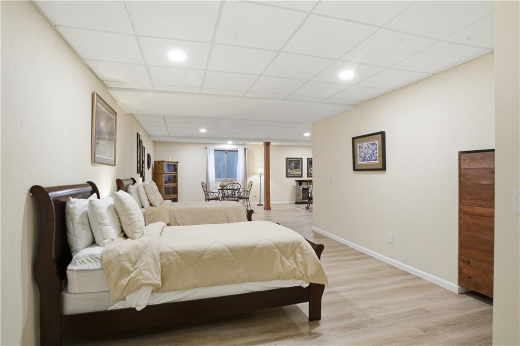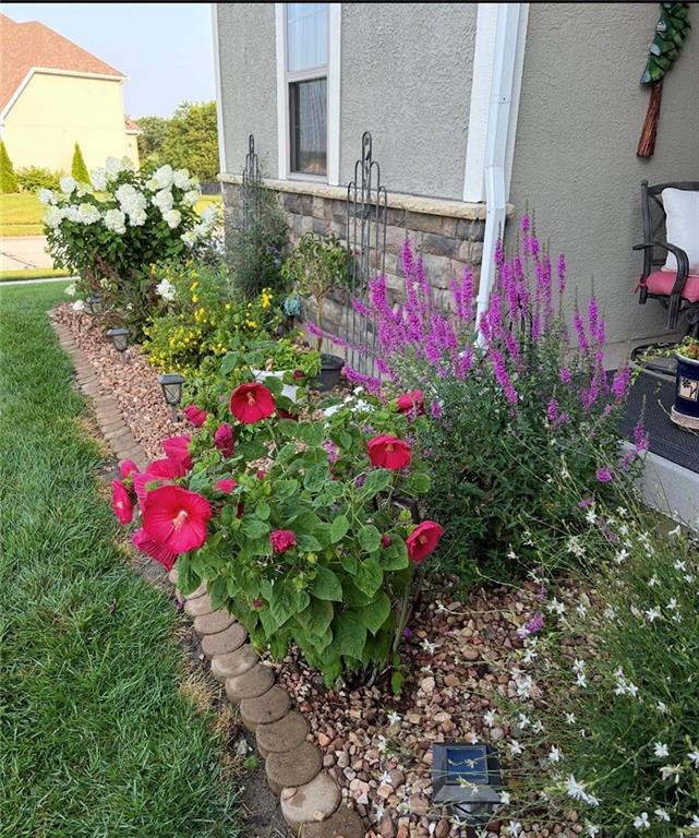 Former model home in highly desirable Greyhawke at the Lake! This spacious 4-bedroom, 3-bath residence offers an open and airy floor plan with tall 6-panel doors, large closets, and quality finishes throughout. The main level features three bedrooms, including a private primary suite with dual vanities, a jetted tub, a tiled glass walk-in shower, and a private water closet. Hardwood floors flow through the great room, dining area, and kitchen, and a gas fireplace anchors the living space perfect for both everyday living and entertaining. The finished daylight basement provides flexible space for recreation, guests, or hobbies. Step outside to enjoy the covered patio overlooking a beautifully landscaped corner lot that adjoins greenspace and includes an in ground sprinkler system. A security system and internal antenna streaming system are added bonuses. The three car attached garage offers plenty of room for vehicles, storage, or lake gear. Recent updates include a new roof and gutters for added peace of mind. Located just minutes from Smithville Lake and Paradise Pointe Golf Complex, with easy access to top-rated Smithville schools and Northland amenities, this home delivers space, comfort, and an unbeatable location.