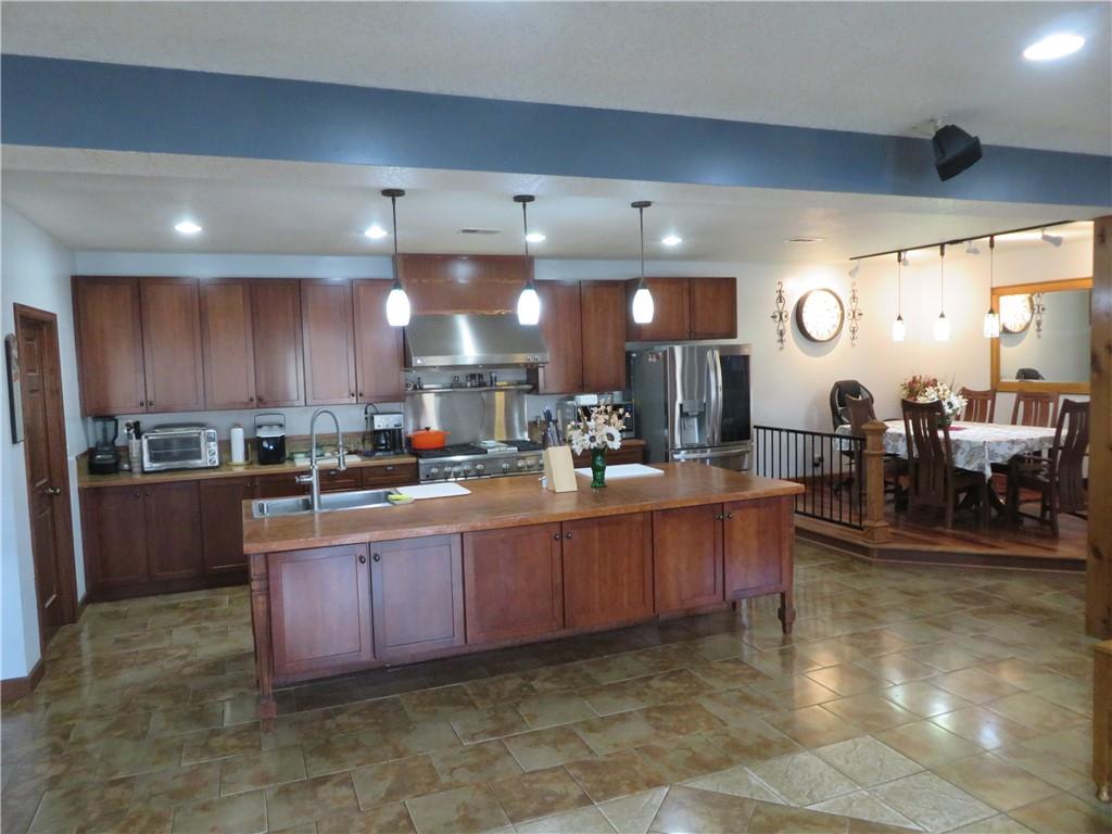 Pristine 30+/- acre country estate - 3 bed, 2 bath with expansive open living room, great room, dining and custom kitchen with large island and beautiful cherry cabinetry, all kitchen appliances included as well as washer and dryer in the large laundry/mechanical room. This immaculate property has a well thought out design with high end features, 1-step entry, one level living with extraordinary light, oversized primary suite has walk-in closet, large bath with walk-in shower, soaker tub and water closet. Great room has wet bar and cherry cabinets. Enjoy the scenic views of the large, stocked pond from every front window, patio, and 10x10 deck with pergola. 40x30 3 car detached garage with upper-level storage. 24x14 workshop and carport. 30+/- acres of rolling landscape teaming with wildlife, turkey and deer. Plum and cherry trees, blackberries, raspberries, asparagus, raised garden beads and beautiful landscaping. Welcome Home to Stone Henge Estate.