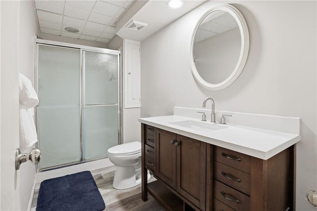 Located in the highly sought-after Foxborough maintenance-provided community, this move-in-ready 3-bedroom reverse 1.5-story villa sits on a spacious corner lot with a side-entry garage. The main level features a welcoming family room with fireplace and built-ins, a formal dining area, and a beautifully updated kitchen (2023) with new cabinetry, countertops, expanded island, and a premium ZLINE 6-burner dual-fuel range. The primary suite and second bedroom are both on the main level with hardwood floors installed in 2022. The finished lower level was renovated in 2024 and includes a large family room, game area, full bath, and the third bedroom located in the basement—perfect for guests or a private office. Enjoy maintenance-free living with HOA-covered lawn care, snow removal, trash, recycling, street maintenance, and neighborhood pool access. Fantastic location close to schools, parks, shopping, dining, and highway access.