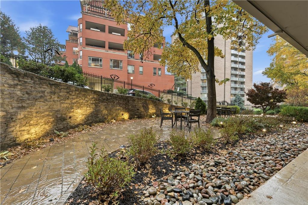 Welcome to this oversized, freshly painted and immaculate condo in the heart of the ICONIC COUNTRY CLUB PLAZA; Kansas City's crowning jewel. This corner unit is light filled, with an updated, fully-accommodating kitchen and bathroom. Ample room within your living room and space for dining. A sizeable storage closet, a true laundry room with washer and dryer staying and perfectly appointed, large bedrooms full of light and Plaza views. The 25 foot long outdoor balcony patio is perfect for dining al fresco or reading a book and bird watching. Located in the historic Wornall Plaza building, this residence offers warm, attentive onsite management, exceptional accessibility throughout and true lock and leave, maintenance-free living. A leased garage parking space is available for $75-$100 per month. The HOA covers property taxes, water, heat, A/C, building insurance, maintenance, recycling, trash and management. This is an incredible value in the hub of Kansas City.