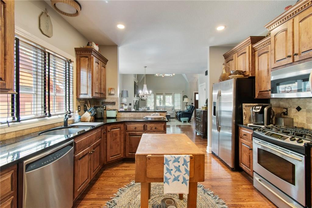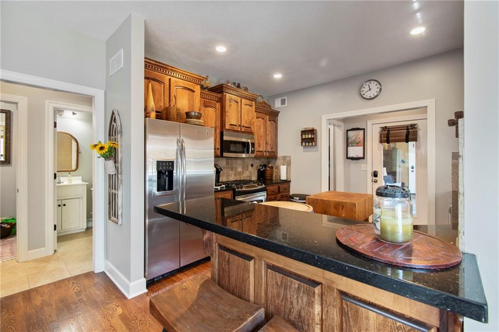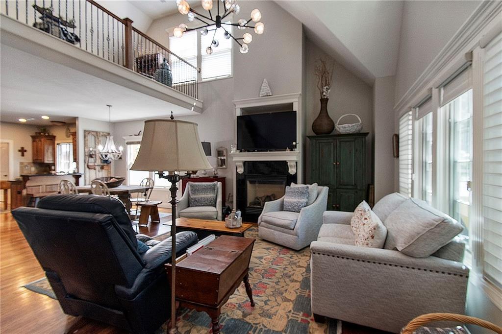Discover this stunning villa nestled in the coveted Shoal Creek Valley - The Village, where luxury meets convenience just steps from the country club and local amenities. This meticulously maintained property welcomes you with an impressive great room featuring dramatic soaring ceilings, a warm fireplace, and elegant hardwood flooring that flows throughout the main level. The heart of the home showcases a chef-inspired eat-in kitchen equipped with premium stainless steel appliances, expertly crafted custom cabinetry, and a convenient breakfast bar perfect for casual dining. Retreat to the luxurious master suite, complete with a spacious walk-in closet and spa-like ensuite bathroom featuring dual vanities, an upgraded shower, and a relaxing jetted tub. The finished basement expands your living space with an expansive recreation room, a third bedroom, and a full bathroom, while the upper-level loft provides the perfect sanctuary for a home office or quiet sitting area. Located within the prestigious Liberty School District, this exceptional property combines elegant living with practical convenience and hassle-free maintenance. Monthly HOA fee of $293 covers lawn care, snow removal, exterior building maintenance, exterior painting and roof repair.