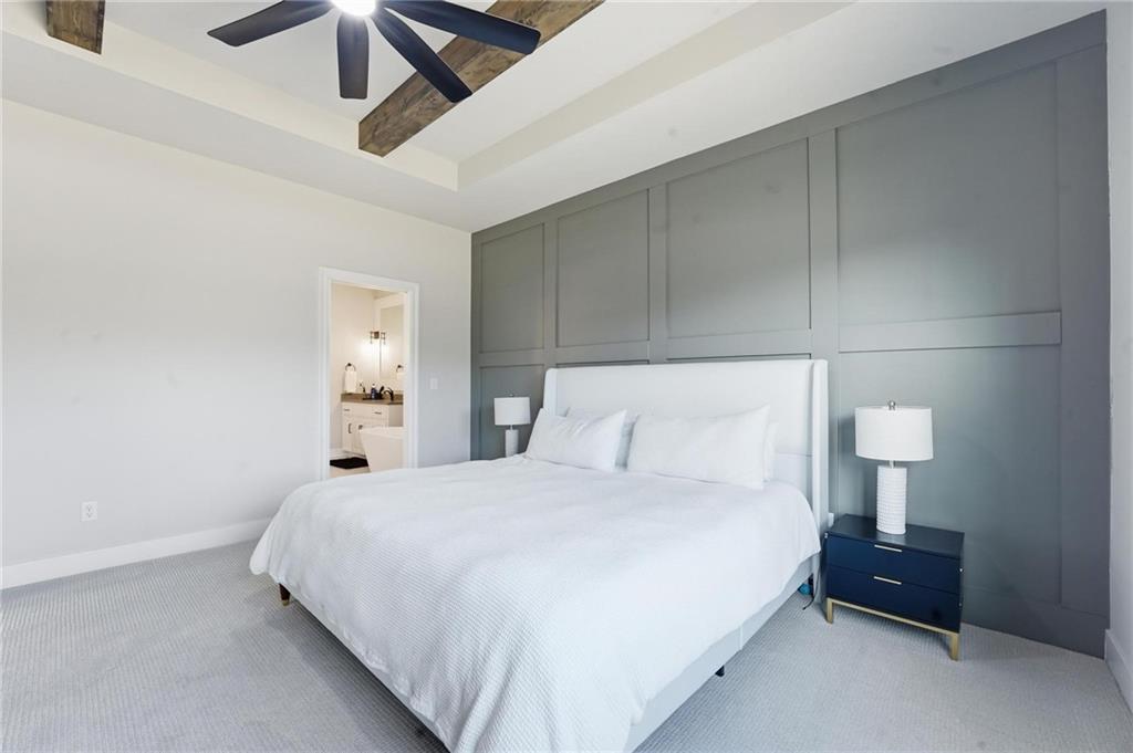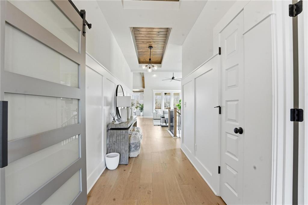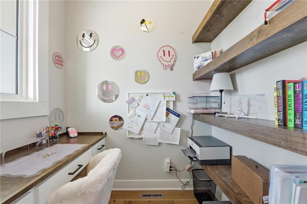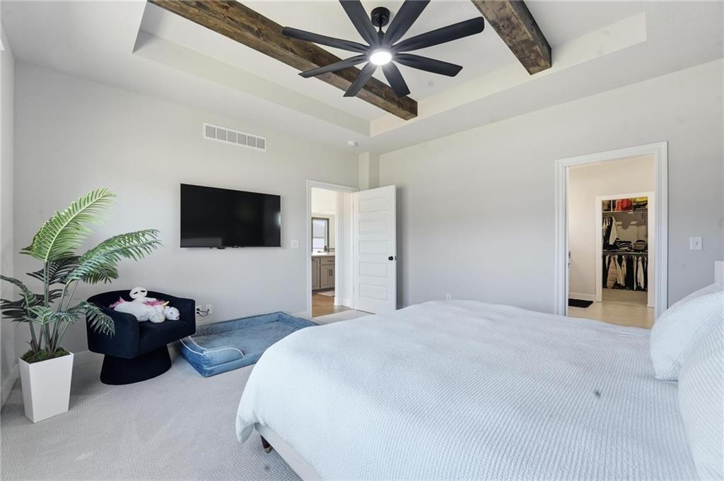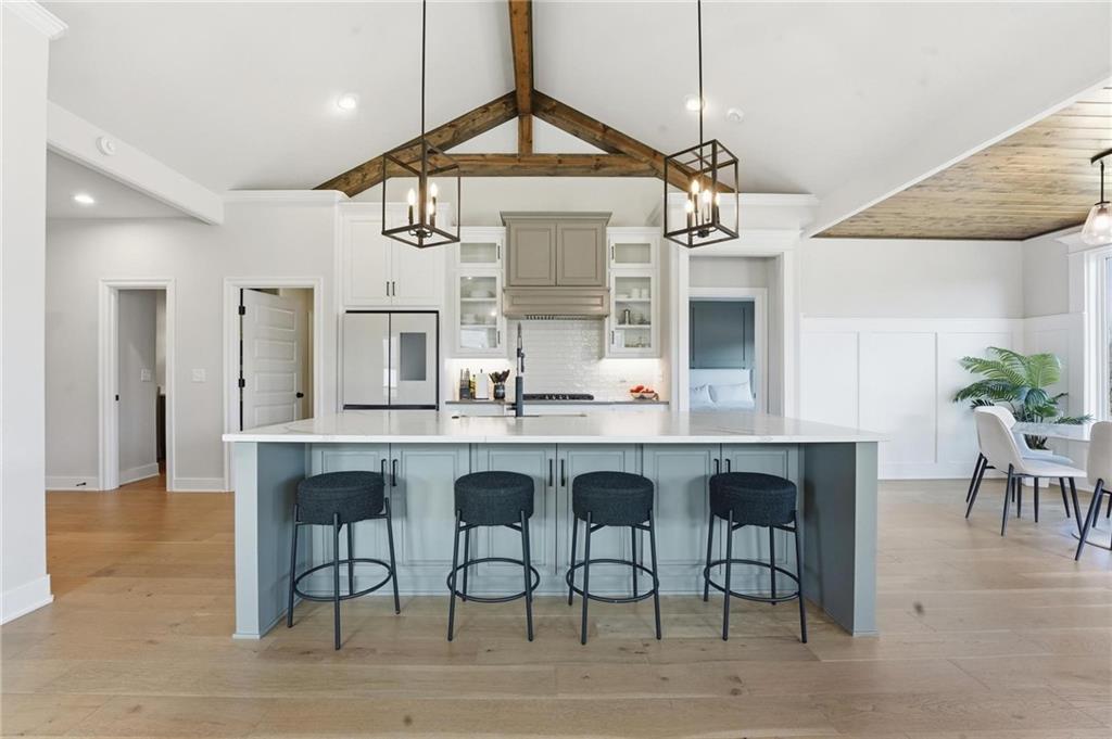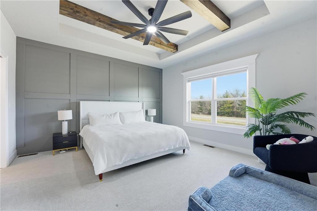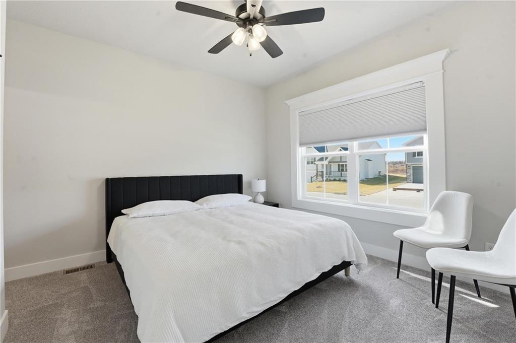 Better than new in this barely lived in TruMark Custom Home... This is the Kyle IV with loads of beautiful finishes! No need to wait for new and blinds are installed and home is furnished and ready to move into! New Kyle IV is listed for $795k! The layout is perfect! Floorplan is open! Finishes are beautiful! Meticulously maintained, front pocket office with built-in shelving. Front, spacious bedroom flooded with daylight. Greeted with a welcome entryway. Unique features, including beams, wood ceiling finishes. custom blinds, hardwood floors, nice lighting and hardware and more! The TVs stay for convenience. Kitchen and dining areas are perfect in size, come with loads of quartz counter space, huge island, a butler's pantry, boot bench and access to laundry room. Primary Suite with gorgeous ensuite that you must see! Bathrooms come with quartz countertops and stylish finishings. Covered deck with stairs down to yard and lower level walkout. The lower level has 3 more conforming bedrooms, recreation room, full bathroom. Security system and sprinkler system are already installed. Why wait for new when this flawless home is waiting just for you!