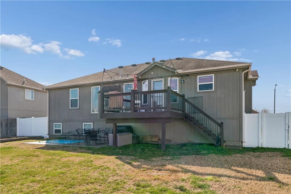Get ready to fall in love with this well-maintained home. The perfect neighborhood for a growing family. It features 4 bedrooms, 3 bathrooms, and is located on a cul-de-sac in the Twin Oaks subdivision. Built in 2015, this split-entry layout has just under 2,000 of finished square feet and main level laundry. Cozy up next to the fireplace at night and enjoy all the natural light during the day. You'll love the granite countertops, stained cabinets, and an eat-in dining space. Don't miss out on this wonderful home! Primary suite offers a walk-in closet and a private bath with a jetted tub. The finished lower level adds a second living area, 4th bedroom, and full bath — giving you flexibility for guests, office space, or additional living. Enjoy entertaining and cooking out on the back deck or patio. The fenced-in backyard is perfect for a growing family or for your furry friends. Enjoy the quick access to I-49, shopping, and dining.