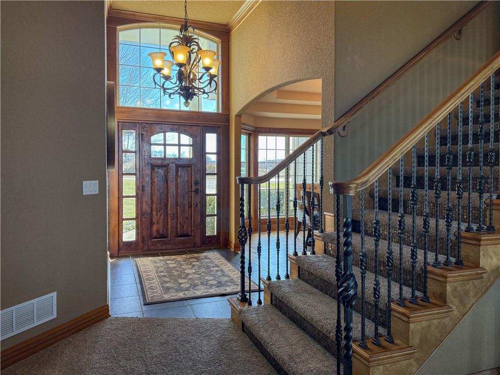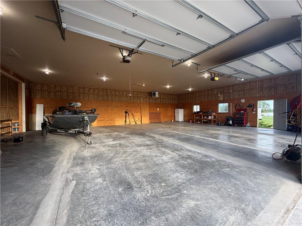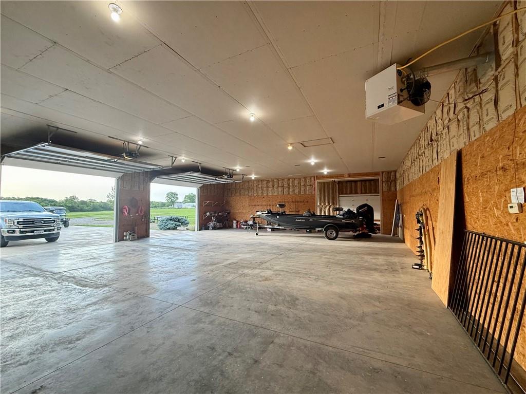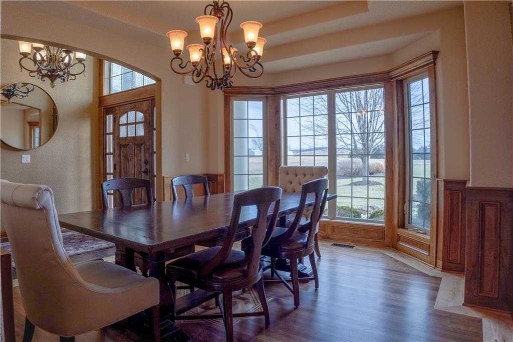 Stunning one-of-a-kind waterfront estate on approximately 10 private acres just minutes from Lawrence, Baldwin and Kansas City! Backing to the Wakarusa Watershed lake, this home offers exceptional views, privacy, and abundant wildlife on blacktop roads. The main level features an open floor plan with a deluxe kitchen, oversized island, office, and luxurious primary suite. Upstairs are four spacious bedrooms, each with bathroom access and walk-in closets. Bonus storage space in the easily accessible attic. The finished lower level is designed for entertaining with a family room, wet bar, and seamless access to the outdoor living area, custom gunite pool and spa. Offering over 5,500 sq ft of living space with 7 bedrooms and 5 bathrooms, the property also includes a four-car attached garage and an impressive 3300+ square foot heated shop with concrete floors, oversized doors, 220V electric, and RV storage. A rare opportunity for luxury lakefront living with space to work, play and unwind!