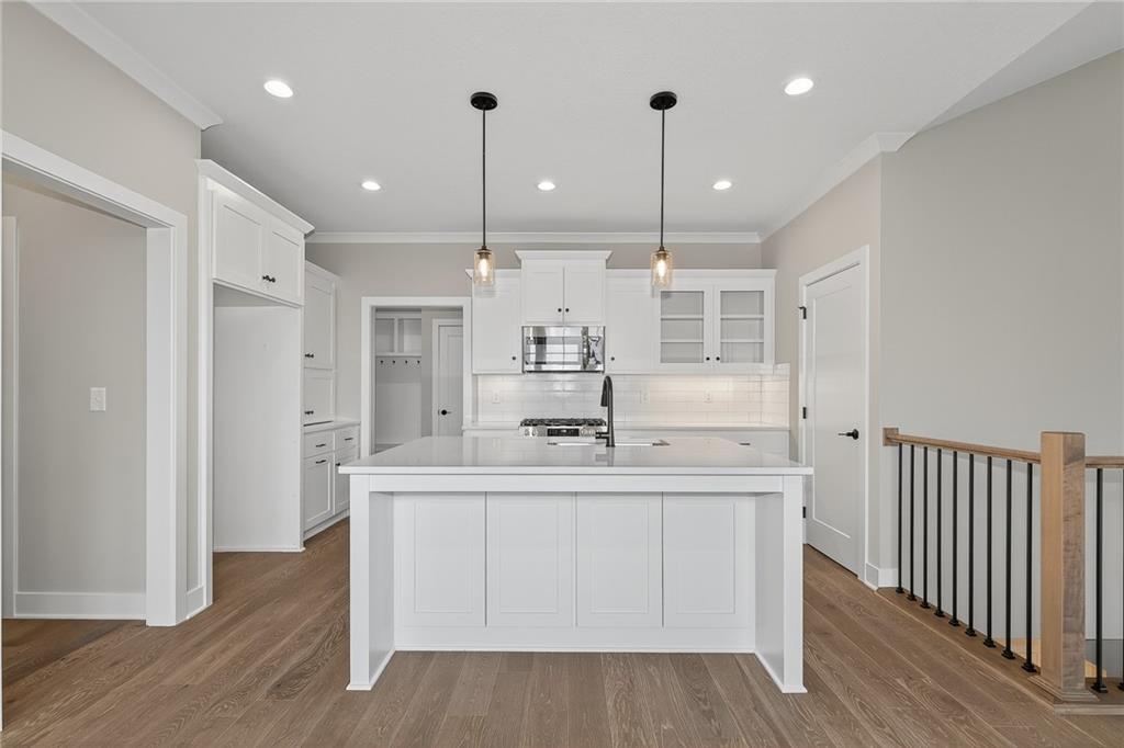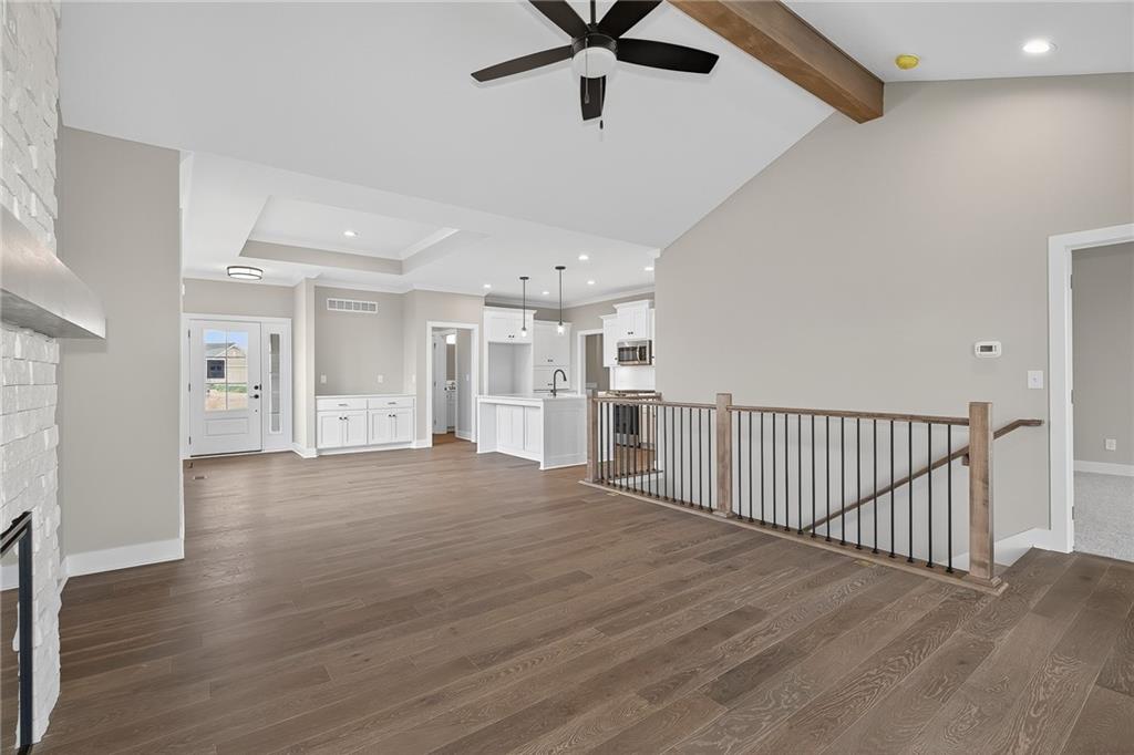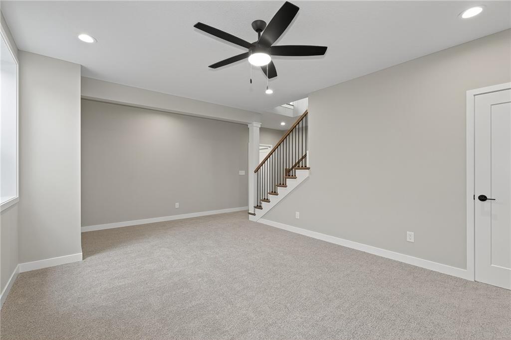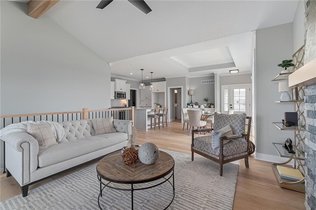 COMING SOOON!! Twin Villa, the Haven plan, by Lambie Grand! Located on lot 84R that offers a generous backyard and no immediate backyard neighbor backing up to greenspace. Quick hwy. access, close to Shawnee Mission Park, Lenexa City center, Black Hoof Park, & more. RIGHT SIZE into this smart sleek twin villa, one floor easy living, covered deck, functional/effective home office tucks away behind a pocket door. Kitchen boasts an abundance of cabinetry, coffee Bar/appliance garage, walk-in pantry, 5-burner gas range/oven. The home is filled with natural light. Primary bedroom flows to the primary bath with oversized walk-in shower, private toilet area, double quartz vanity, flows into generous-size master closet, then out to the laundry area for sensible living flow. The lower level offers additional bedrooms and a recreation room that provides space for guests, or returning college-age kids, a craft room, exercise room, scrapbooking room, or multitude of other functions. Pictures are of former model. Due to be complete June 2026. Don't miss out on the opportunity to make this home yours today!