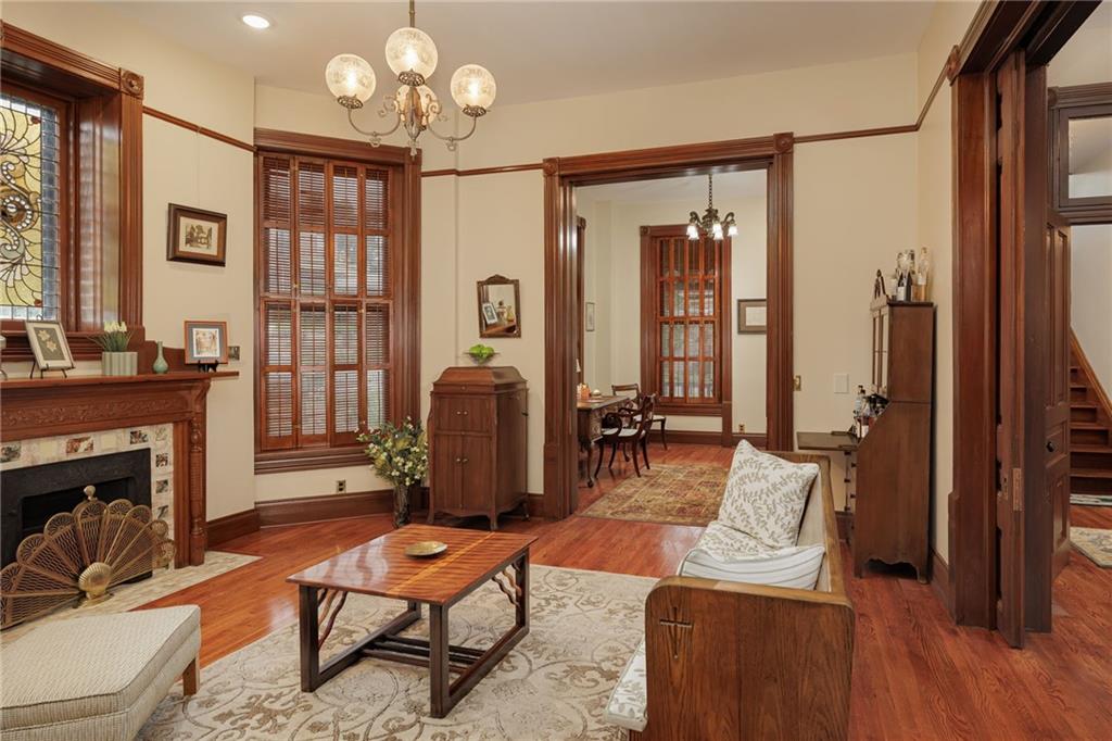 Step back in time and embrace the grandeur of the Kemper House, a jewel nestled in the coveted Museum Hill Historic District. A magnificent corner Lot, all-brick, built in the mid-1800s, and cherished by only three families. Prepare to be captivated by its three full stories, each brimming with character and charm, offered fully furnished with only a few exceptions, making it a perfect Airbnb or bed and breakfast. Imagine yourself within the walls of this sprawling home, boasting 5+ bedrooms, a library, and 3.5 bathrooms, where sunlight dances across gleaming hardwood floors. Tall ceilings and intricate pocket doors whisper tales of a bygone era, while seven fireplaces, with original (one replicated) tiles. Countless stained-glass windows bathe the interior in a kaleidoscope of color, three exquisitely stair-stepping alongside the majestic double staircase. The updated kitchen, a blend of modern convenience and timeless design, features a gas stove, a spacious pantry, and a dedicated coffee station. Entertain with grace in the formal dining area, seamlessly flowing into the inviting family rm. Ascend to the third floor and discover a self-contained living space, a true showstopper sure to leave you breathless. This remarkable home, restored to its former glory after a fire on the West side, has been lovingly rebuilt and renovated since 1993. The current owners invested over $1.3 million in its revival, meticulously preserving the original woodwork, tile, and numerous other details, ultimately bringing it back to life in 2020. You will find plenty of street parking, or you can use the additional lot, ideal for building a detached garage. A recent $100,000 investment in a stunning stone wall, sidewalk,& lush landscaping adds the perfect finishing touch, along with a new roof. Its prime location is within walking distance of churches, restaurants, pubs, shopping, & major highways—super low taxes. Don't miss your chance to own a piece of the past and create your future.