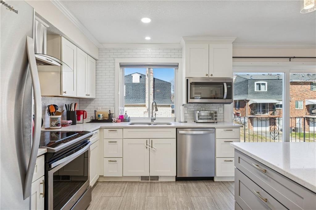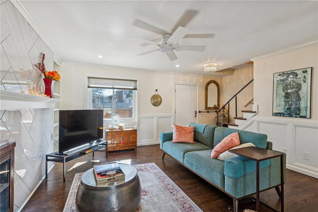 One of Greenbrier's most exquisite high-end remodels is once again available. Stunning $85,000 renovation (in 2019 Dollars) creating a beautiful one-of-a-kind masterpiece! One of the Larger 2BR floor plans in Greenbrier. An absolute Must-See property! Everything from the paver brick front courtyard patio with custom fencing and gate, the amazing job-finished REAL hardwood flooring, to the wainscoting and built-in bookcases, to the fully torn out and rebuilt custom staircase--now featuring lower-rise steps & wider treads inlaid with hardwood flooring. Walls blown out and kitchen opened up to create a dream kitchen with wonderful open floorplan including stainless steel appliances, sparkling quartz counters, custom cabinetry and even a pot filler! New half bath on main level as well. Upstairs you will find another gorgeous, remodeled bath, two very generous-sized bedrooms with able closet space + a large hall linen closet. The lower level features a ceramic tiled family room with access to the laundry, storage and single-car attached garage with private driveway behind. Fantastic subdivision with friendly neighbors of all ages and tons of activities! So close to all that downtown Overland Park offers, including the Kansas' #1-Rated "BEST" farmer's market current being re-constructed and expanded! You must see this wonderful home!