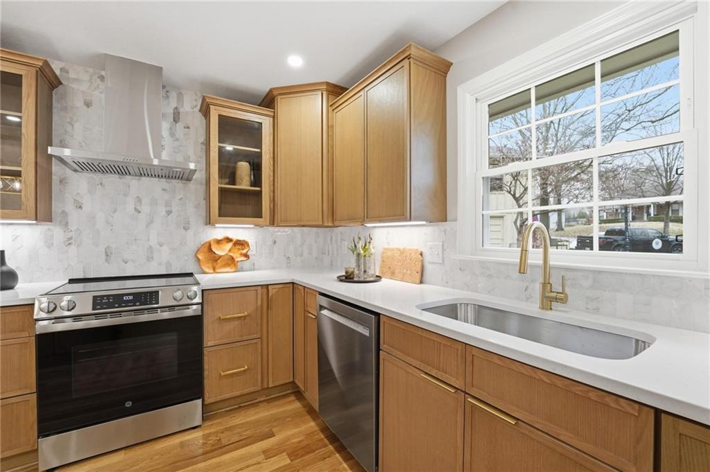 STUNNING REMODEL IN THE HEART OF LEAWOOD! Enjoy the unparalleled lifestyle of Leawood Country Club, offering premier access to championship golf, tennis, swimming and a vibrant social scene just moments from your front door! Welcome to this beautifully reimagined home where thoughtful design meets modern luxury. Soaring vaulted great room steals the show with its dramatic floor-to-ceiling stone fireplace and abundance of natural light, creating a warm yet striking focal point. Entertain with ease in the dream kitchen, designed for gatherings and everyday living alike, offering quartz countertops, center eat-in island, stainless steel appliances including built-in microwave/oven combo and stove with second oven, bar area and pantry with seamless flow to the dining and living areas. Step outside to the expansive composite deck, perfect for relaxing evenings or hosting guests. Main level features two spacious bedrooms, including a serene primary suite complete with a spa-like bath, oversized walk-in closet with convenient washer/dryer hookups for true main-level living. Full, finished walk-out lower level expands the living space with a huge family room, wet bar, two additional bedrooms, third full bath and a second laundry area, making it ideal for guests, multi-generational living or added convenience. Tons of built-in storage spaces to keep life organized! Fantastic location close to dining, shopping, parks and activities. This exceptional renovation blends style, comfort and functionality in one of Leawood’s most desirable locations—truly a must-see! WELCOME HOME!!!