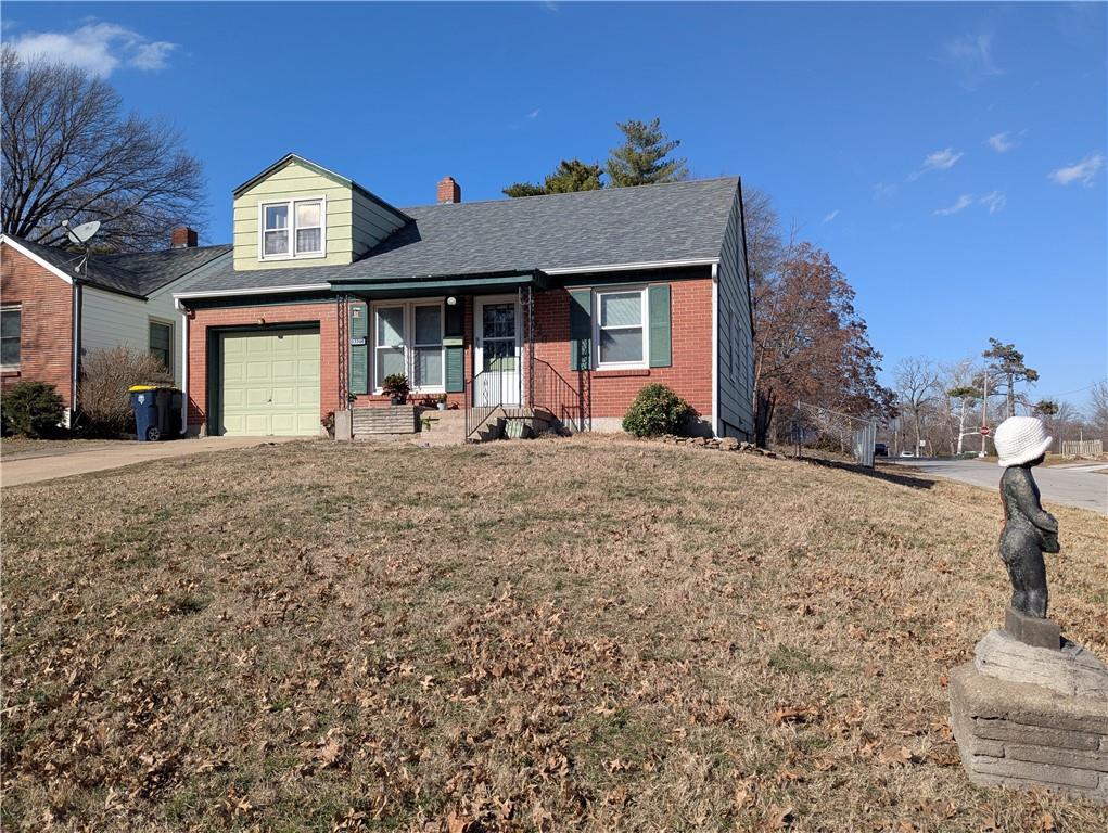 **Back on Market No Fault of the Seller, Previous Buyers did not perform on contract and sellers were notified the day of closing that they were not going to close.** Classic Brick Charm Meets Modern Style Near Brookside & Waldo! Modern comfort meets timeless character in this stunning 3-bedroom, 2-bathroom Minimal Traditional brick home. Perfectly positioned to offer the ultimate Kansas City lifestyle, this residence boasts undeniable curb appeal with its striking red brick exterior, signature gable dormer, and an inviting covered front porch featuring vintage decorative metal supports. Gourmet Kitchen: The heart of the home is a chef’s delight, featuring sleek dark cabinetry, premium stone countertops, a stylish tiled backsplash, and high-end stainless steel appliances including a gas range. The upper level provides a cozy retreat with a private bedroom featuring unique architectural angles and ample natural light. The expansive, clean basement offers incredible versatility—perfect for a home gym, workshop, or additional family living. This corner lot, Waldo adjacent property is ready for the warm hearted buyer ready to make this house, their home.