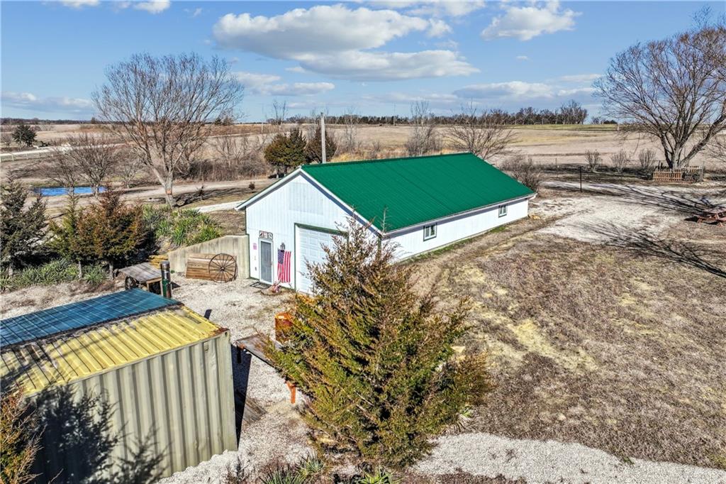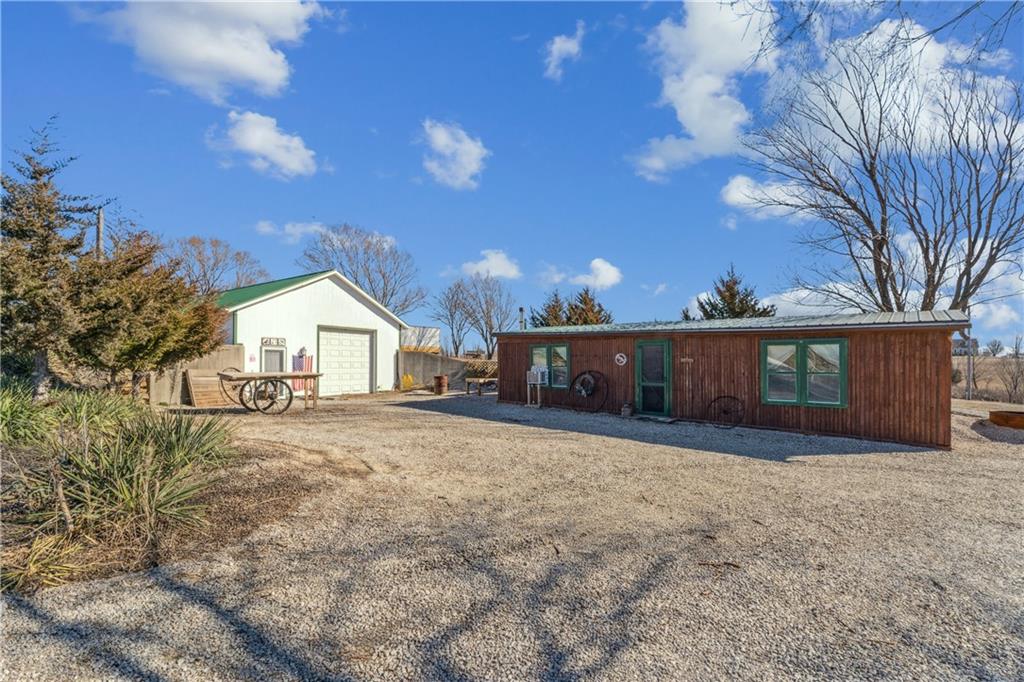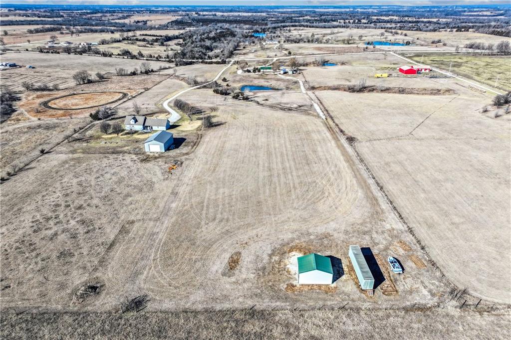 Looking for the perfect small acreage with some buildings, here it is! Almost 10 rural acres providing gorgeous sunrise and sunset views almost daily. Quiet and peaceful nature sounds are at your doorstep, but still just a quick drive to small-town conveniences in Ottawa, Osawatomie & Paola. How about a stocked pond for the fishing enthusiast? Yes, and there's even room to add another in the future. Fully connected with rural water, a septic system and a newer 200 AMP electric panel in this 26ft x 48ft concrete foundation Studio/Garage/Workshop which was reconstructed in 2018. Plus, there is a BONUS 8ft x 40ft rustic bunk-cabin, created & designed to remind the seller of their family's cherished lake retreat. Also attached to the bunk-cabin is an 8ft x 40ft cargo container, room for plenty of recreational vehicles or extra storage. Rolling meadows, garden space galore and hay fields too. Seller had such a prolific garden that produced over 1500 pumpkins one fall. There's an additional large barn/shed in the rear of the property ideal for storing farm equipment. Picture perfect views at this perfect get-a-way, less than 45 minutes to the KC metro. There's 2 extra RV hook-ups so invite your friends down for the weekend to enjoy this paradise with you. Seller has added lots of graveled driveways, plenty of parking spaces and a gated entrance for privacy. Whether you are looking for a recreation place on the weekends or a haven to build your future home, this homestead has just gotten started and is ready for you to finish it your way.