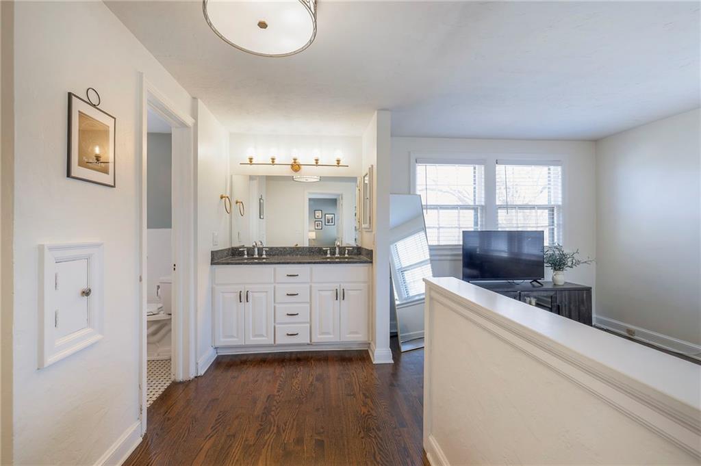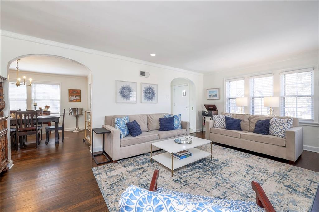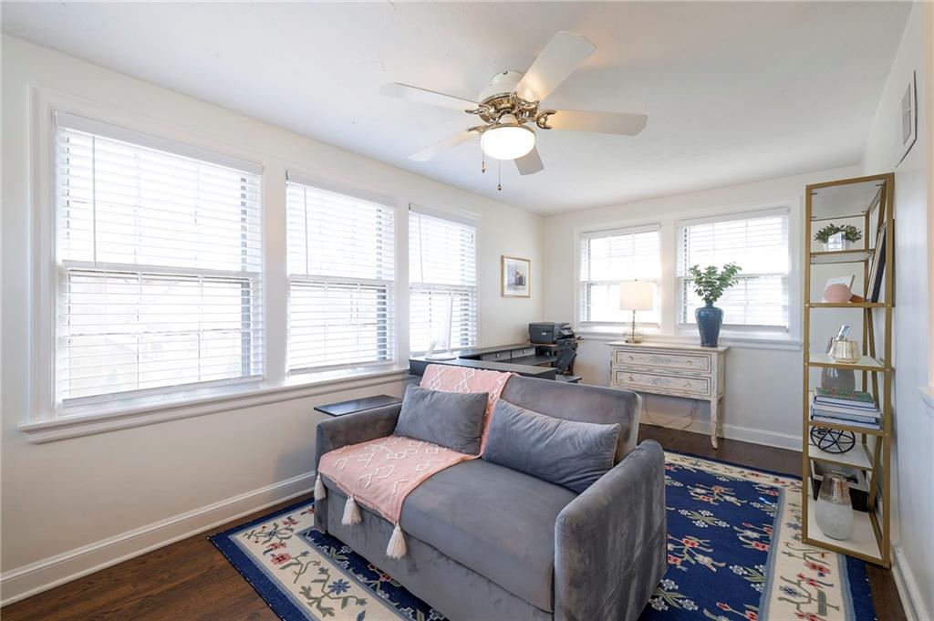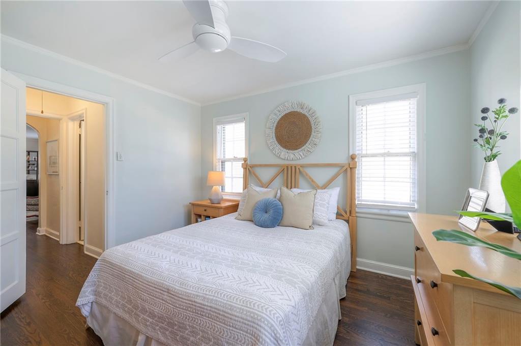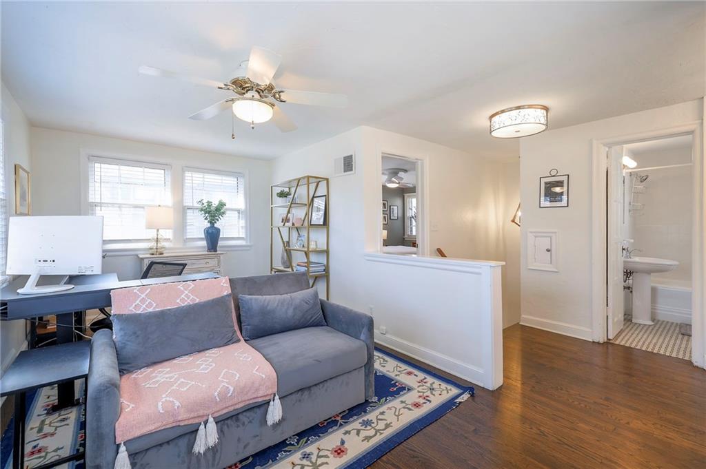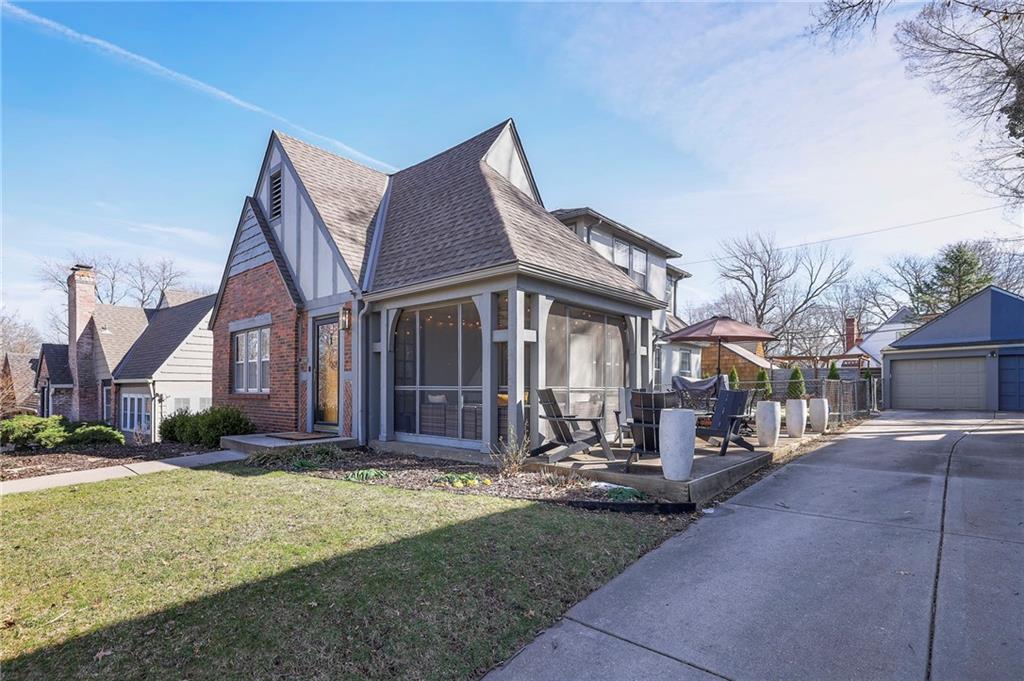 Charming Tudor perched on a hill in Oak Meyer Gardens! This beautifully maintained home features original hardwood floors throughout, a screened-in porch overlooking a charming street, 2 full bathrooms, a walk in closet for the primary suite, and first floor laundry. All of this and you’re walking distance to neighborhood favorites such as McLain’s, Front Range Cafe, and City Barrel Pizza! The main level offers a comfortable bedroom and full bathroom, an inviting living room with a wood-burning fireplace which naturally flows into the formal dining room, convenient first floor laundry, and a bright breakfast nook just off the kitchen. The kitchen has been thoughtfully updated with new tile flooring, and all appliances stay. CURRENTLY A 2-BEDROOM HOME, the finished upstairs space offers an easy opportunity to convert the current office to a third bedroom at a low cost (contractor bid of $1,600 available in MLS). The private upper level also features the primary suite, a generously sized closet and a double sink vanity- both a rare find in homes of this area. The finished basement provides additional flexible living space perfect for a rec room, home gym, office, or playroom. Outdoor living shines here! Relax on the adorable screened-in porch complete with a ceiling fan and electricity, or enjoy dinner on the side patio overlooking the fenced backyard. A one car detached, car friendly garage adds everyday convenience. Major improvements include: 5-year-old roof, HVAC replaced in 2023, hot water heater installed in 2020 The sellers have meticulously maintained records of all updates and improvements. Don’t miss this Oak Meyer Gardens gem!