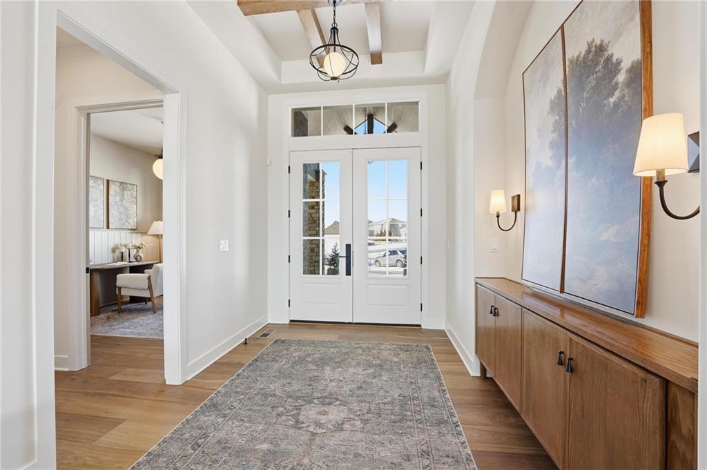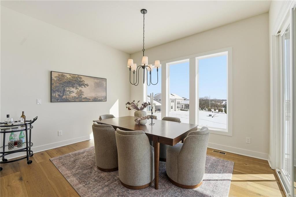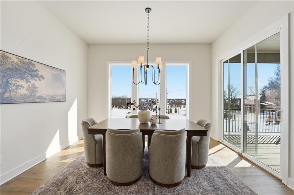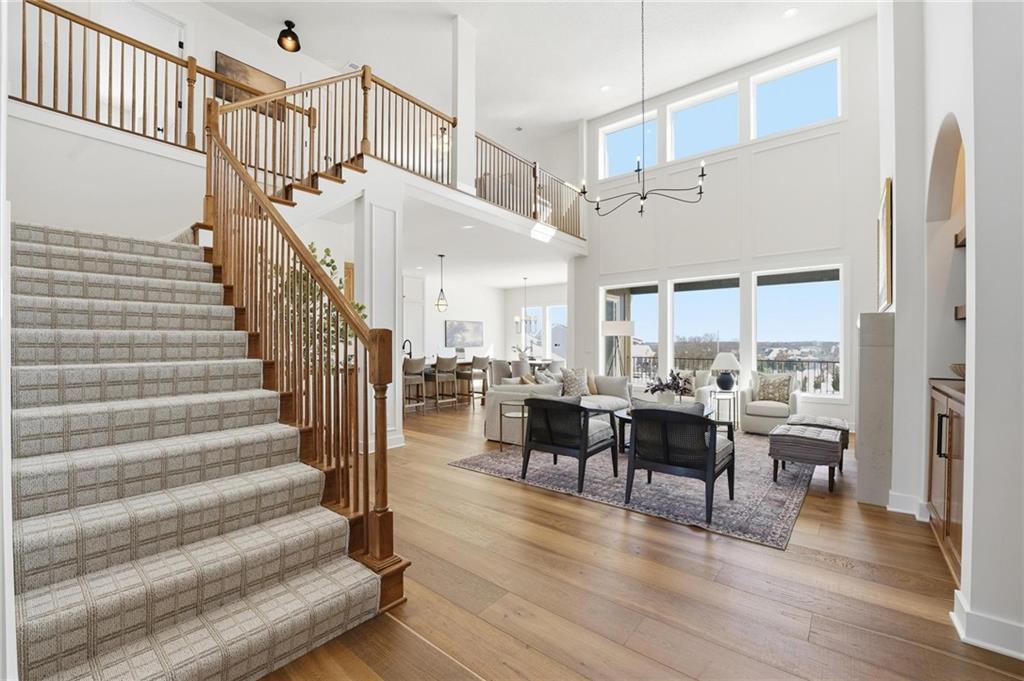 The new Aspen floor plan by Coventry Builders. THIS IS A MODEL AND IS NOT AVAILABLE FOR SALE. This 4 bedroom + Loft, 4.5 bath, 1.5 Story home features a large front porch. The Great Room has a soaring two story ceiling and the open living area is complete with a beautiful fireplace, built-ins, and tons of natural light. The kitchen has lots of cabinet and countertop space and a huge island. The large pantry/prep kitchen is adjacent. Beams in the Entry Foyer ceiling add to the WOW. The Dining room opens to the large covered composite deck. The main level features a 2nd bedroom with it's own bath and walk-in closet. The spacious main level Primary Bedroom opens to the luxurious Mbath with a large walk-in shower and free-standing tub. The large Master closet features plenty of storage possibilities. Connected to the master closet is the laundry room with a quartz countertop. The second level features a large loft that overlooks the Great Room. There are two additional spacious bedrooms on this level. This home is on a walkout lot, has a 3 car garage and a large covered deck. Don't miss seeing this home! Community amenities are open and include: clubhouse w/ fitness room, dog spa, gathering room and catering kitchen; 4 pools including a zero entry outdoor pool, outdoor kiddie pool, Indoor lap pool and indoor machine pool; sport court for basketball and pickleball, and playground. The new Blue Valley elementary school, Aspen Grove, is located in the center of the community.