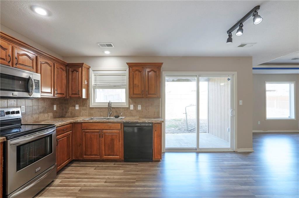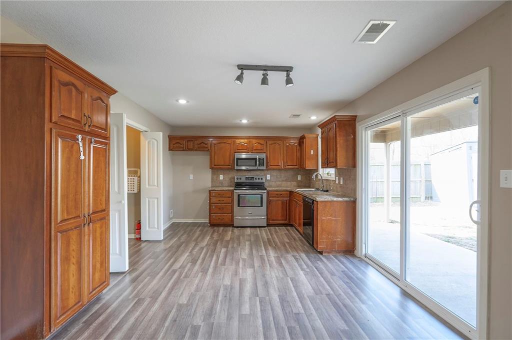 Enjoy the ease of true one-level living - no steps! Newer home designed for comfort and convenience. Fresh paint and brand-new flooring create a bright, welcoming atmosphere. The kitchen showcases beautiful wood cabinetry that adds warmth and timeless appeal, and the thoughtful layout offers three bedrooms, two full baths, and a 2-car garage to fit a variety of needs. The spacious primary bedroom includes a walk-in closet, providing generous storage and everyday practicality. Step outside to a nicely sized double-fenced yard, complete with a wood privacy fence and an additional interior chain-link enclosure—perfect for pets, play, or added peace of mind. A convenient doggie door makes outdoor access easy for your furry companions, and the covered back patio is a wonderful spot to relax or entertain. Seller to provide a one-year buyer warranty with an acceptable offer. Blending style, function, and accessibility, this move-in-ready home is ready to welcome you in.