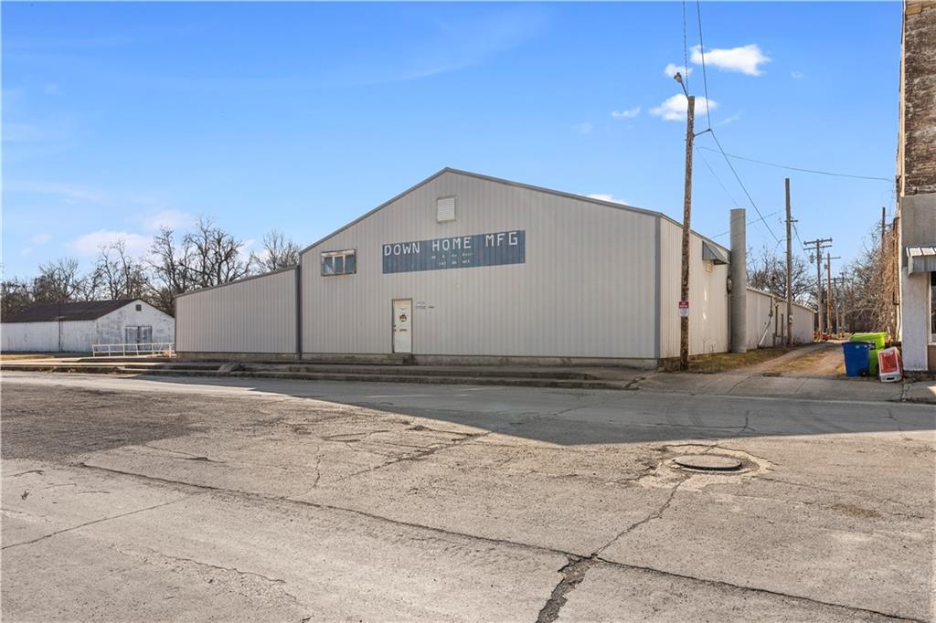 Industrial warehouse and manufacturing property for sale in Rich Hill, Missouri offering just over 14,500 square feet of total improvements located in Bates County less than one mile from I-49. Built in 1991, this commercial facility consists of two connected industrial buildings functioning as one cohesive production and warehouse operation. The structures feature clear span steel truss construction, high ceilings, insulated interior, and concrete floors throughout, providing flexible space for manufacturing, fabrication, assembly, storage, or contractor operations. Functional access is supported by three overhead doors measuring 25' x 15', 20' x 10' with sloped clearance, and 8' x 10' with 10' to 12' ceiling height, in addition to one 10' x 8' dock-height door. Equipped with 3 phase electric service to support industrial power demands. Previously utilized for custom fabrication and assembly services, the facility demonstrates proven operational functionality for light manufacturing and production businesses. Situated on a 130 x 175 corner lot, approximately 0.52 acres, the property features metal exterior construction, alley access, and street frontage on two sides for improved truck access and maneuverability. Located in Rich Hill, MO along the I-49 corridor, approximately 1 hour south of Kansas City and approximately 2 hours north of Bentonville and Fayetteville, Arkansas. Close proximity to I-49 provides convenient north-south interstate connectivity. This property offers strong potential for an owner occupant, expanding manufacturer, contractor business, or commercial investor seeking industrial space in Bates County.