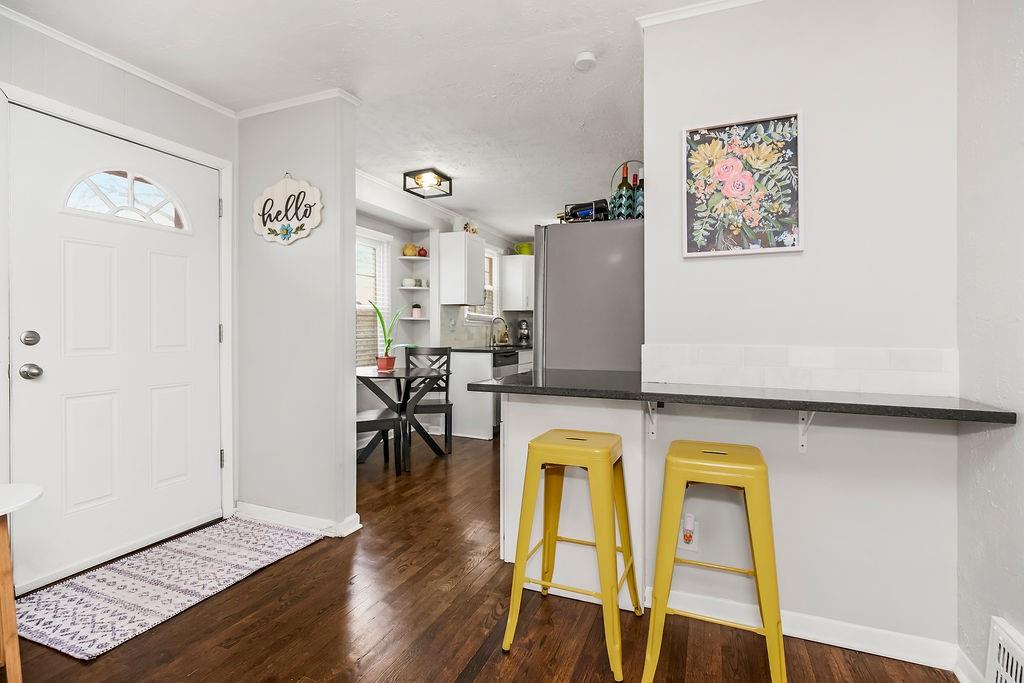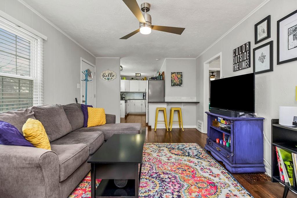 Welcome to this Charming Ranch that offers 2 generous size bedrooms and 1 updated bathroom. You will also find hardwood floors that provide an open flow from Kitchen to Living Room. The Kitchen provides granite countertops, eat-in area, and a bar area that provides additional seating. Also features great curb appeal and a large backyard.