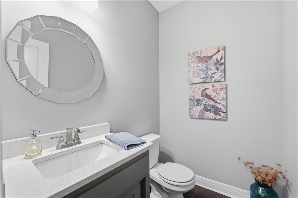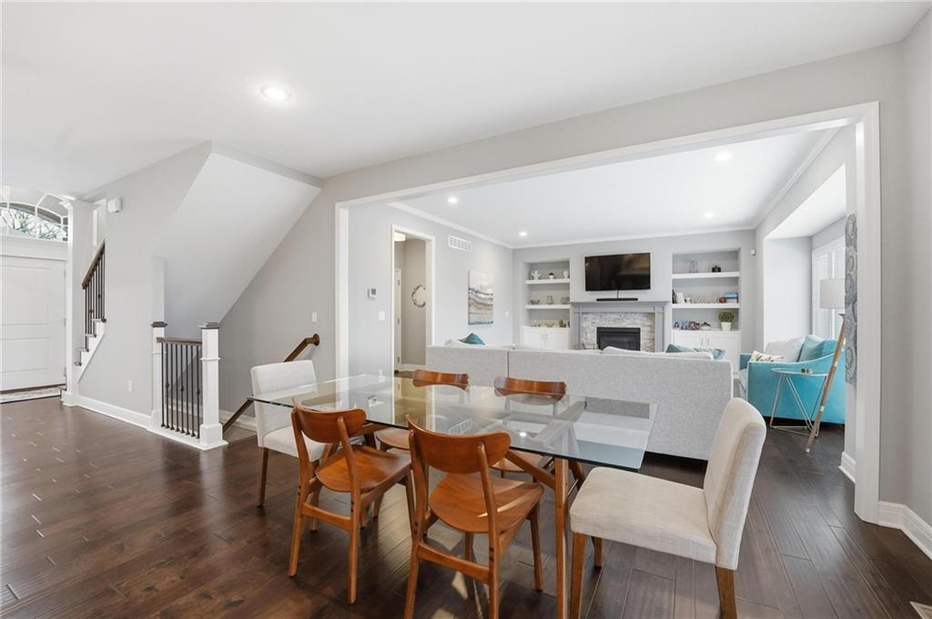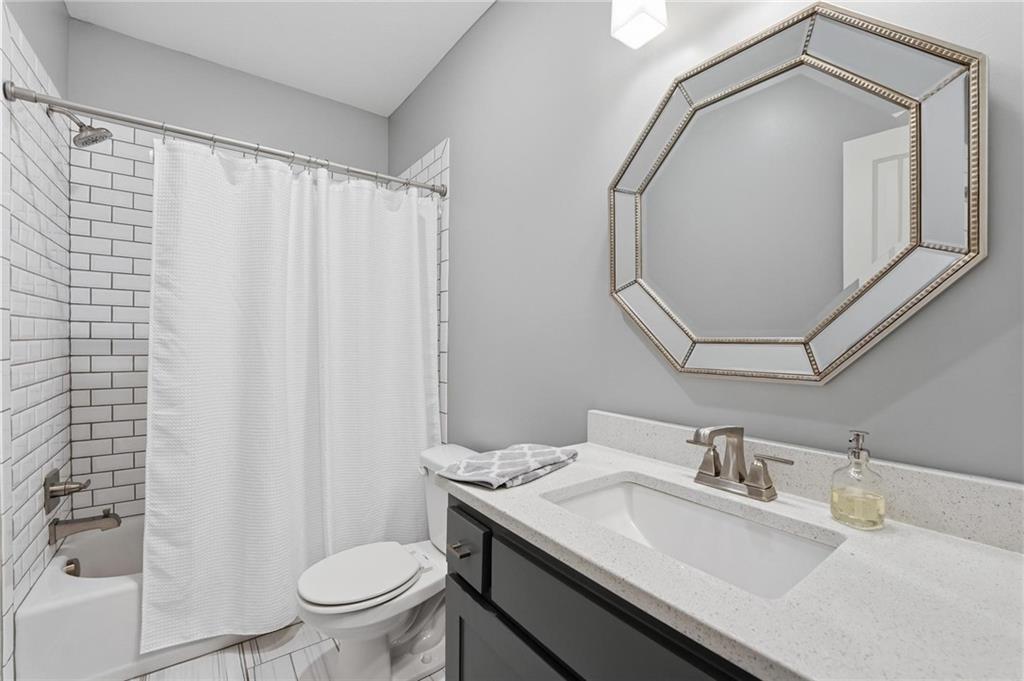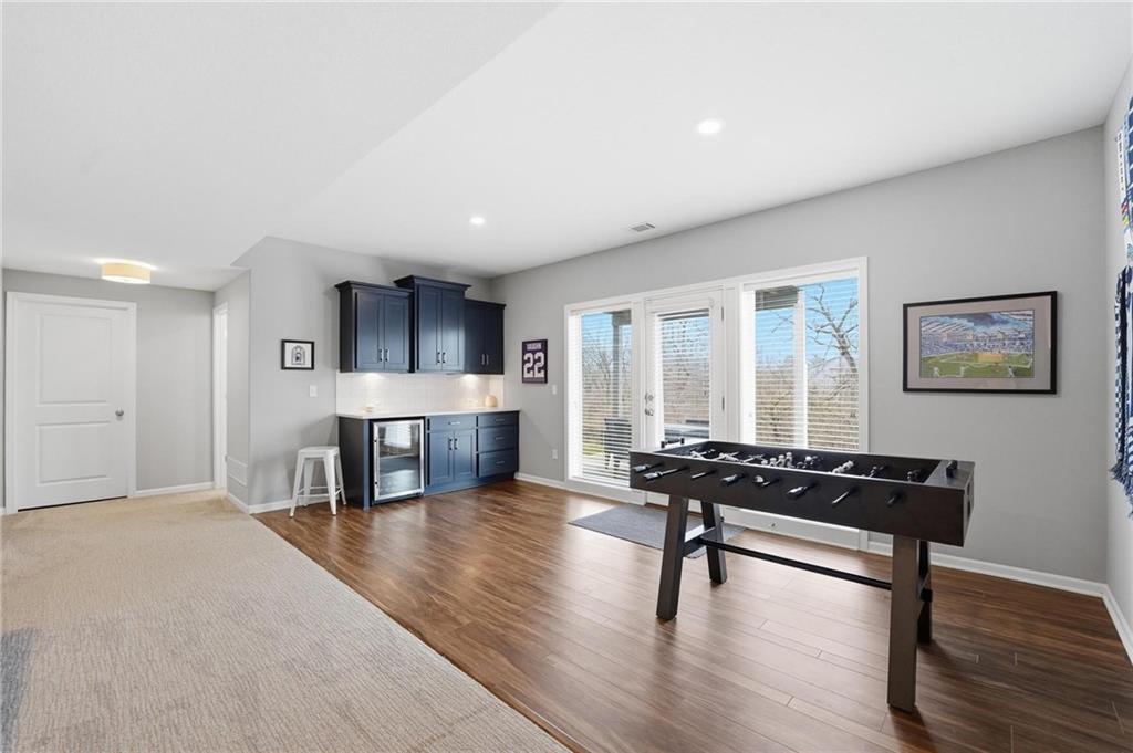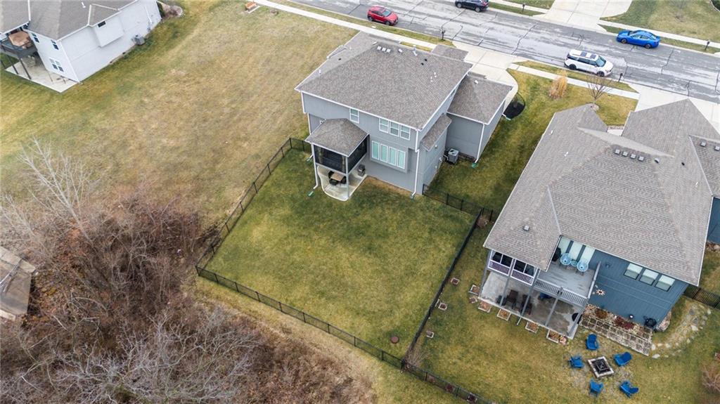 Better than new and thoughtfully designed, this beautiful 2-story home in the desirable Chapel Ridge subdivision offers space, comfort, and scenic views. From the moment you enter, you’re welcomed by a formal dining area perfect for gatherings and special occasions. Just beyond, a convenient butler’s pantry leads into the light-filled kitchen featuring quartz countertops, a large center island, pantry, and plenty of workspace. The adjoining breakfast area provides a comfortable spot for everyday dining. Step outside to enjoy the covered, screened-in Trex deck with sleek metal railings—designed for low-maintenance living—overlooking the fenced backyard and peaceful pond view. The kitchen and breakfast area open seamlessly to the inviting family room, highlighted by a stunning stone fireplace with built-in shelving and cabinetry. All four bedrooms are located on the second floor, each generously sized with ample closet space and direct access to a full bathroom. The oversized primary suite offers a relaxing retreat with double vanities, a jetted tub, dual-headed shower with bench, and a spacious walk-in closet with convenient access to the laundry room. The finished basement expands the living space with a comfortable living area, dry bar, room for game tables, a full bathroom, and a storm shelter, along with abundant storage. With beautiful finishes, functional design, and tranquil pond views, this home truly offers the best of modern living in Chapel Ridge.