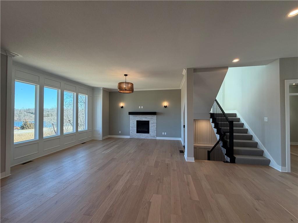 Located in the sought-after Watercrest Landing community, this stunning Makenna model home showcases exceptional design, craftsmanship, and custom detail throughout. Thoughtfully curated with designer décor and high-end finishes, this home sets the standard for modern luxury living in Lenexa. The main level features an open-concept layout with 10-foot ceilings, seamlessly connecting the kitchen, breakfast area, and great room—ideal for both everyday living and entertaining. Just off the entry, a private home office with French doors and built-in bookshelves offers a stylish and functional workspace. Upstairs, the expansive primary suite is a true retreat, complete with a private sitting room perfect for relaxing. The spa-inspired primary bathroom impresses with three shower heads, a freestanding soaking tub, and an oversized walk-in closet. Convenient second-floor laundry is located just steps from the primary suite. Outdoor living shines with a covered deck overlooking green space and beautiful lake Lenexa and Blackhoof Park creating the perfect setting for entertaining or unwinding year-round. With 4 bedrooms, 3.5 bathrooms, and an abundance of custom features throughout, this exceptional model home exemplifies the elevated lifestyle offered in one of Lenexa’s premier communities. A true must-see showcase of design and innovation.