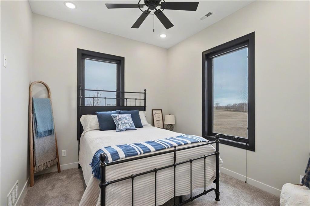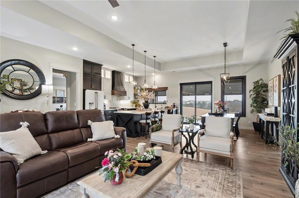 You walk in and feel like you are entering a personal retreat. You'll love the open floor plan, large windows, high ceilings, and beautiful views throughout. Kitchen features high end appliances, custom cabinets and a large island with ample storage making it a perfect place to gather with family and friends. This home was built with a purpose, it has no stairs, wide doorways, an oversized three car garage with ample parking, garage storage and a safe room for emergencies. Beautifully landscaped. This home was built with a Doniphan County Restoration grant and has 10 more years of tax rebates saving you tens of thousands of dollars. Covered porch on the back of the house has heavy custom screens mounted on the perimeter of the porch that work off of a remote. House backs to the future Doniphan Hills Golf Course. As the golf course gets completed, the demand is sure to go up. Come take a look.