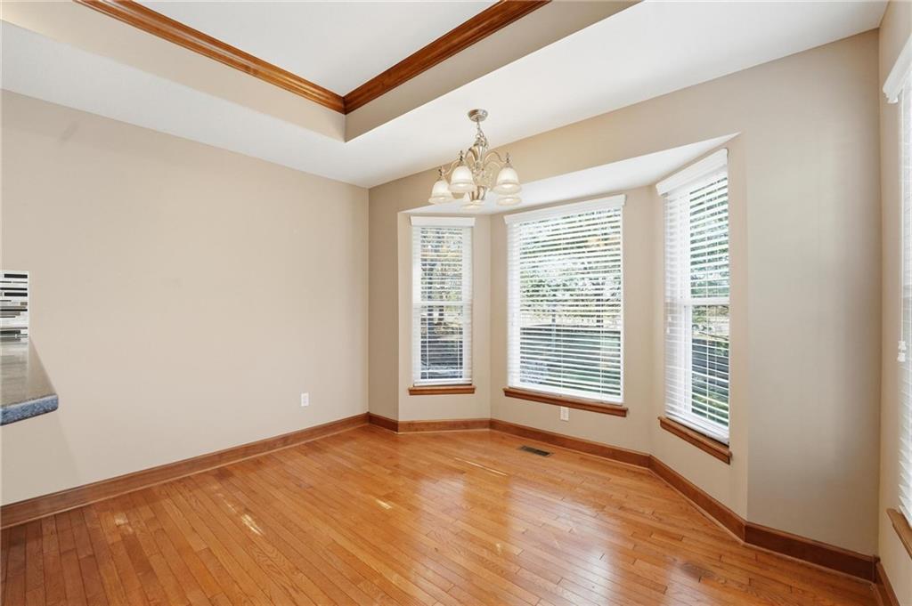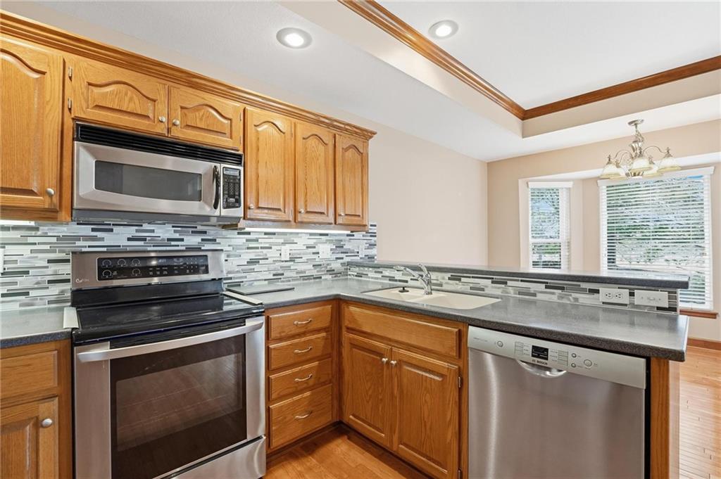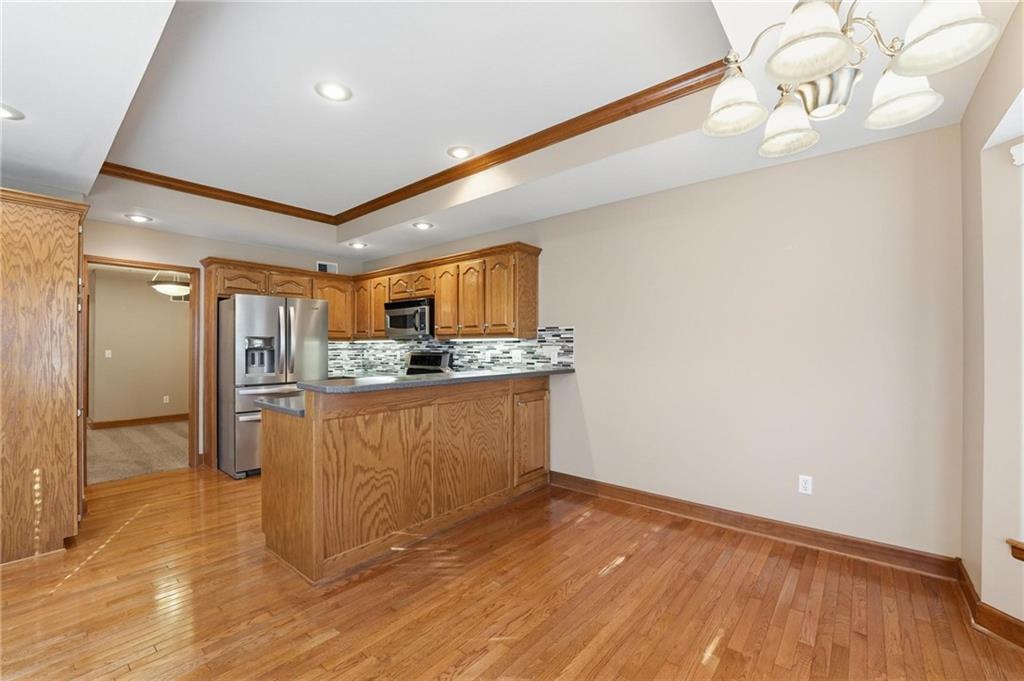 Maintenance-provided Raintree Villa in the highly sought-after Raintree Lake Neighborhood! This super clean, well-maintained home features soaring ceilings, abundant natural light, and a cozy gas fireplace. A flexible dining space offers room for two dining areas or a sitting area. Stainless steel appliances, plus washer and dryer stay. Spacious primary suite includes a walk-in closet and private bath with double vanity, separate shower, and jetted tub. Enjoy walkout access to the patio from the kitchen. A second bedroom perfect for guests. The partially finished basement offers additional living space with a full bath. Plenty of storage space. This has fantastic neighborhood amenities and low-maintenance living!