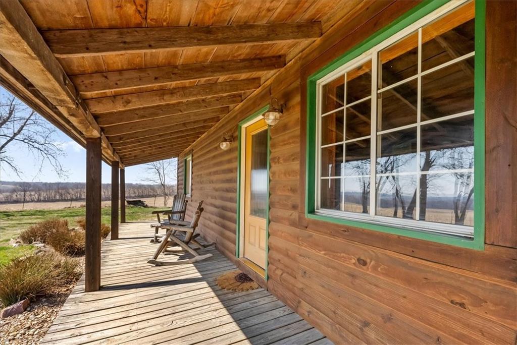 Welcome to "The Lodge"! This wonderful log cabin style home sits on 1.47 acres of land and is surrounded by neighboring farmland, making the setting incredibly peaceful! Enjoy slow coffee-sipping mornings or peaceful summer evenings out on the front porch, then get cozy by the stone masonry fireplace and turn on a movie! This home offers a generously-sized kitchen, a conveniently located laundry/utility room off the kitchen, two main floor bedrooms with a main floor full bathroom, custom log cabin style stairs up to the second floor, a primary suite on the second level with an updated and spacious private bathroom, and a secondary living/family room on the second level in a space that could even be turned into a 4th bedroom if desired. Enjoy the beautiful woodwork and the style that has unfortunately been all but left behind in the modern world. With a 50+ year metal roof, a recently pumped and inspected septic system, a nice shed for storing your yard tools and more, and a view out the windows that makes you want to wake up early and watch the sunrise, you won't regret checking this unique home out. Come see it before it's gone! Buyer/buyer’s agent to verify taxes, square footage, lot size and all details during inspection period. All information deemed reliable but should be verified.