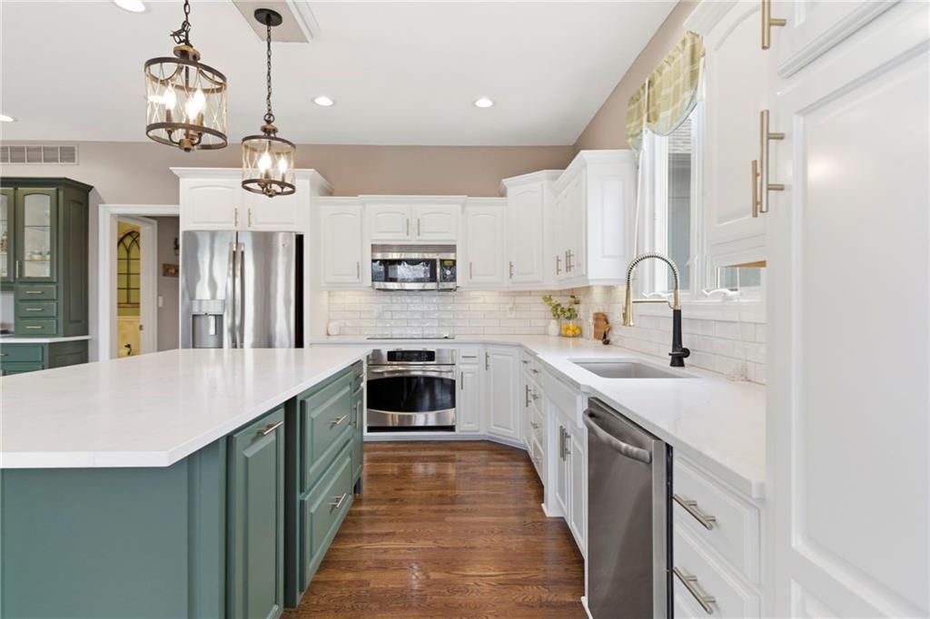 Experience the perfect blend of space and modern living this stunning 5-bedroom, 4-bathroom home offering ample room for family and guests alike, making it an ideal haven for comfort and relaxation. Looking for land? 1.8 Acres of a peaceful retreat in the Piper Area! Step inside to discover a 1.5 Story Home, with all the space you've been looking for. You'll love this recently remodeled kitchen, with painted cabinetry, quartz counters, a large pantry, large island, newer appliances, breakfast area and gleaming hardwoods. A gorgeous see-through fireplace flows into the family area, featuring vaulted ceilings, large windows and the most beautiful view of the sprawling yard. A half bath, utility room and a formal dining area are also on main floor. The Primary Suite on the main floor is very spacious, with a really large bathroom featuring dual vanity, dual showers and a jetted tub, plus a huge master closet. The finished walkout basement is a true highlight, featuring a stylish wet bar, perfect for entertaining. With two inviting fireplaces (one on main and one on the basement), your gatherings will be warm and memorable. Situated on a sprawling **1.8-acre** lot, the expansive backyard is a dream come true, providing plenty of space for outdoor activities, gardening, or simply unwinding in nature. Located in a friendly neighborhood with easy access to local shopping, dining, and top-rated schools, this home combines convenience with tranquility. Only a few minutes from the Highways, Legends area, KC Speedway, grocery stores and Sporting KC, you have tons of amenities near you. Don’t miss your chance to make this exceptional property your own! Schedule your private showing today.