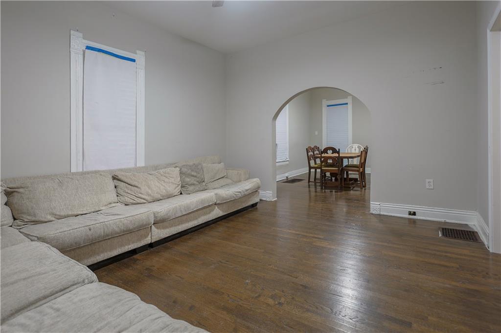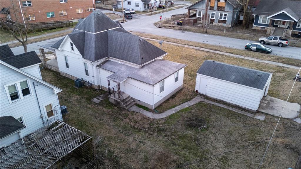 Charming 3-bedroom, 1-bath bungalow situated on a spacious double lot in a prime downtown location! This home features a welcoming front porch with classic stone columns, perfect for relaxing evenings. Inside you’ll find beautiful hardwood floors and timeless character throughout. The detached garage provides additional storage or workshop space. Upstairs offers incredible potential with sheetrock already completed — allowing for an additional 400–500 square feet of finished living space with just a little more work. Located just steps from the park and walking trails, this home combines location, charm, and opportunity. With a few finishing touches, you can truly make it your own!