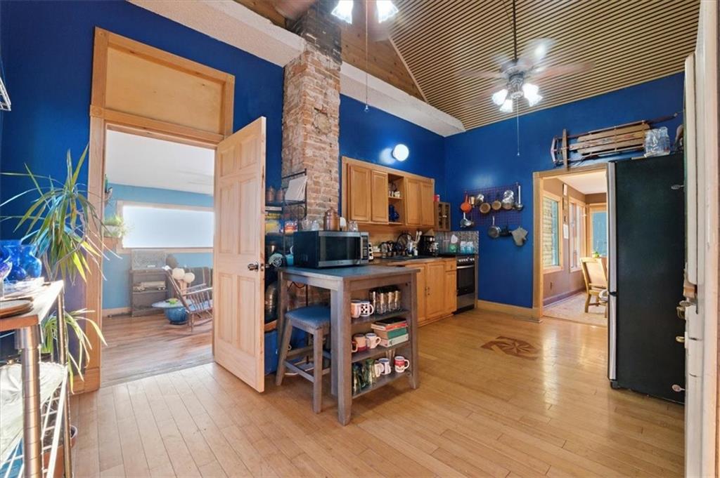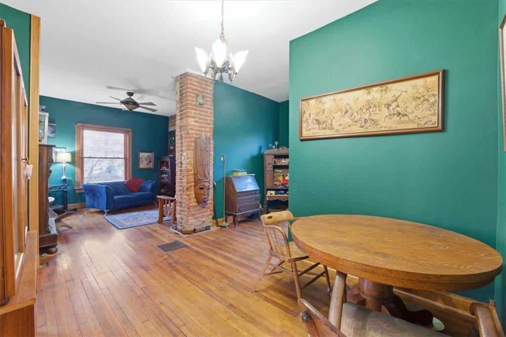 The price is right for this double lot. Kansas City will host the Federation Internationale de Football Association (The World Cup). What a time to own property to welcome our neighbors. This property sits on a double lot. The city cleared along the fence line, allowing an unobstructed view of the skyline. The possibilities for this property/land are unlimited—such a quaint neighborhood. Sellers are avid gardeners, so surprises of all sorts will be blossoming. Updated kitchen, bath, and some fresh paint. The full stone basement holds possibilities, too. Don't miss out!
