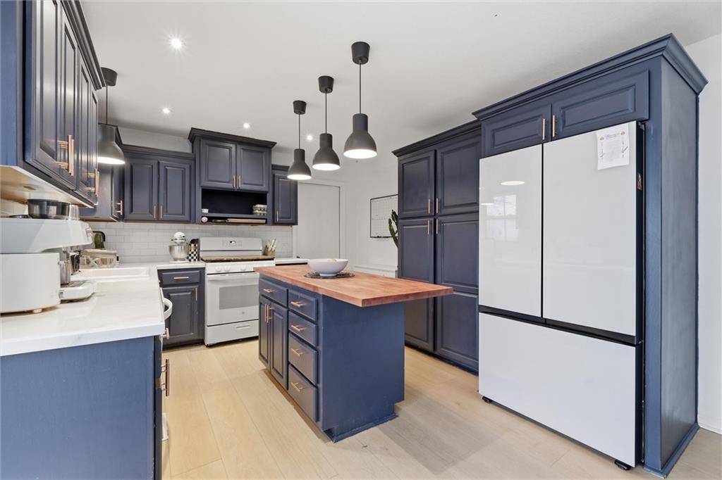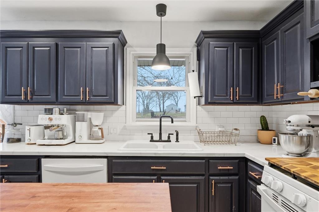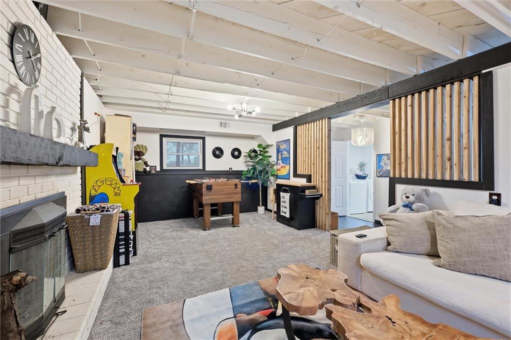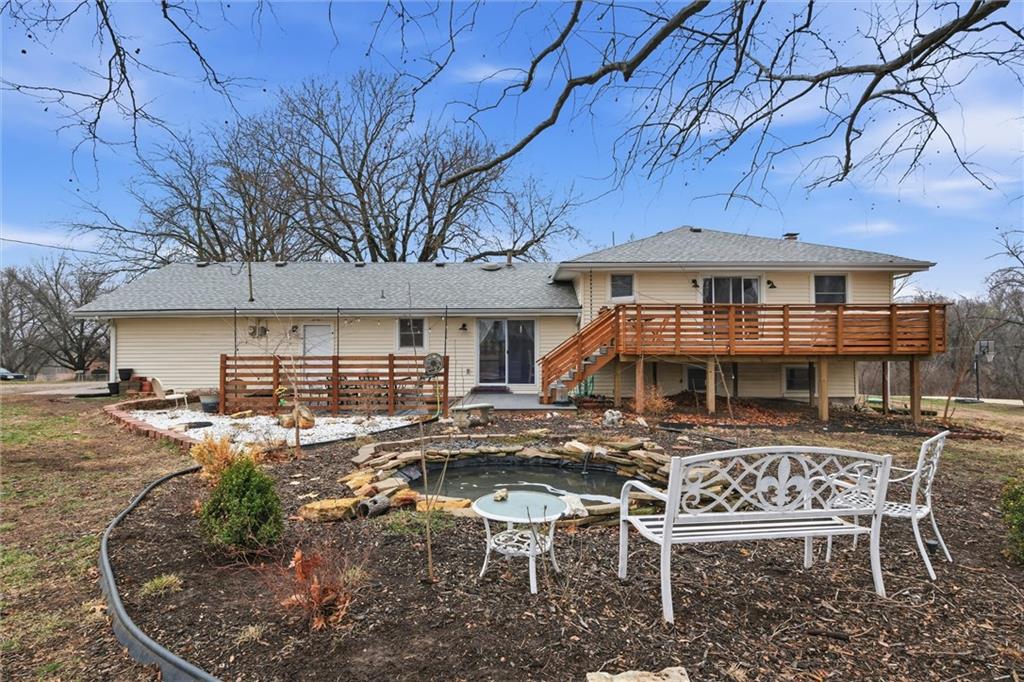 Nestled on nearly 3/4 of an acre in the highly regarded Basehor-Linwood School District, this charming 3 bedroom, 2.5 bath home sits among mature trees with a spacious backyard and deck overlooking a peaceful landscaped pond — it's the kind of setting that's hard to leave. Fresh flooring on the staircase and hallway to the second floor and new carpet in the master bedroom make it feel clean and move-in ready from day one. The kitchen offers rich cabinetry and warm, inviting finishes, while the updated bathrooms feature a beautiful walk-in tiled shower. The finished lower level with new paint and carpet adds great bonus living space, and the sub-basement keeps everything tucked away in storage. A newer roof, HVAC, and water heater mean the big stuff is already done. The chickens and coop stay — a little bonus for anyone dreaming of the homestead life without giving up the conveniences of town.