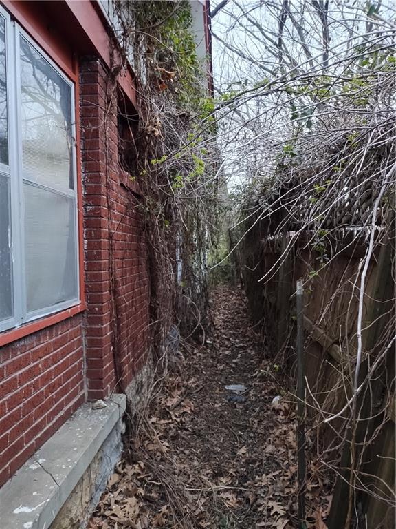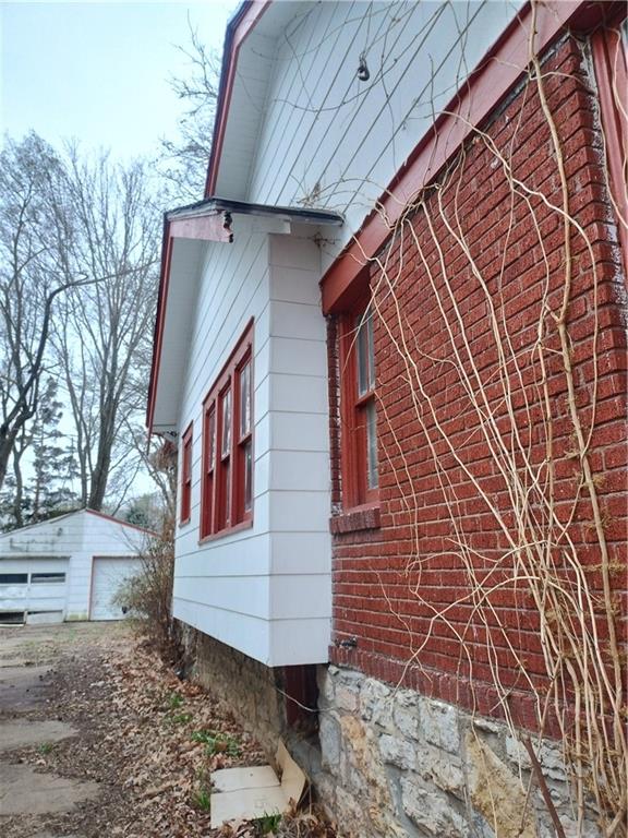 View of property exterior with brick siding
