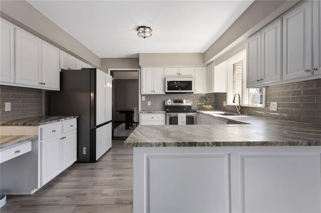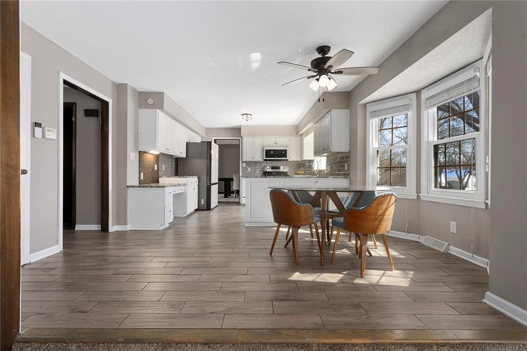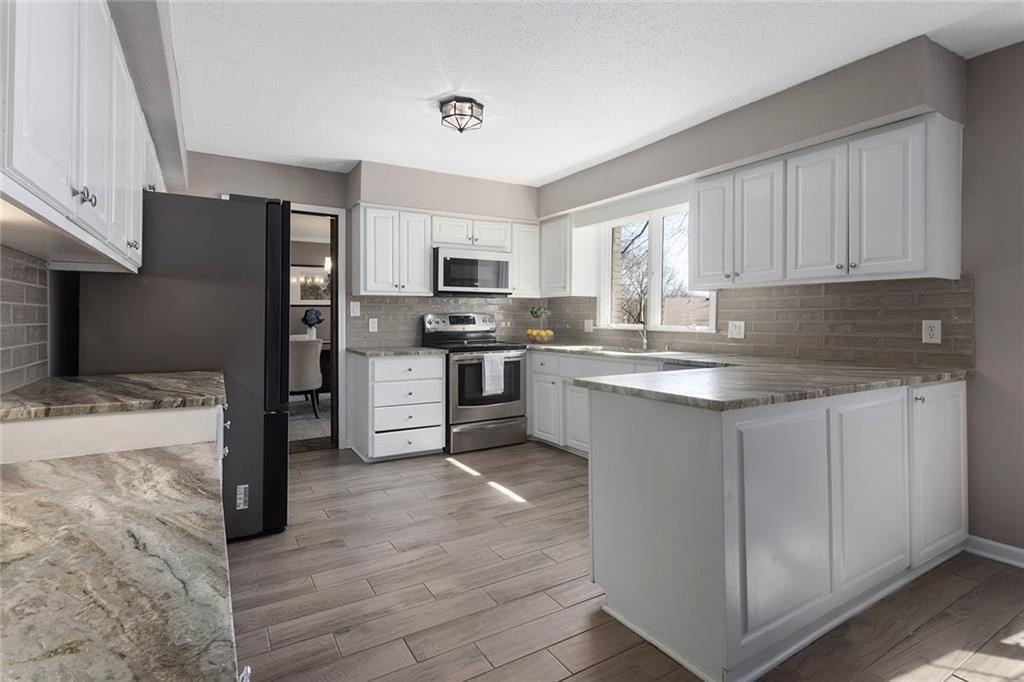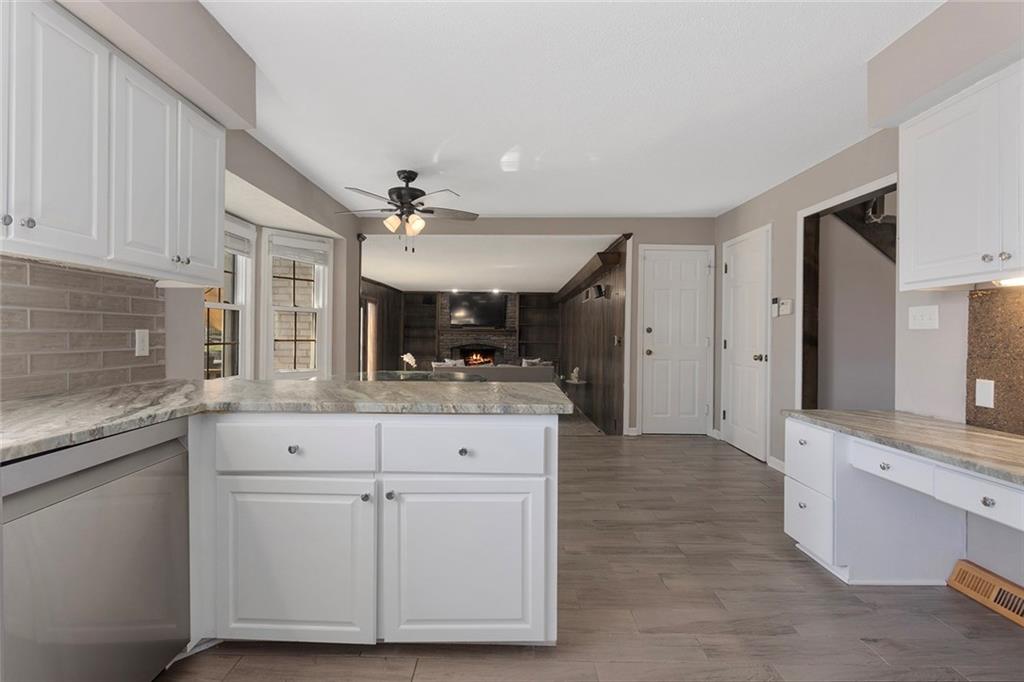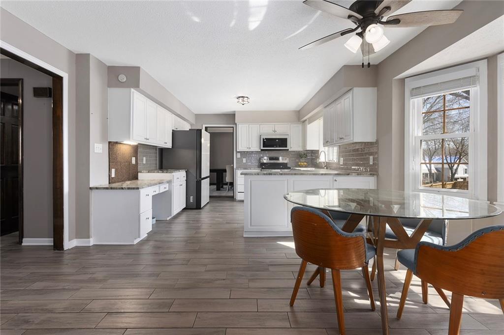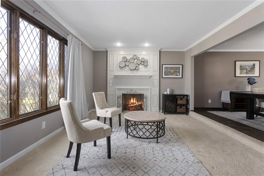 Buyer's loss is your opportunity-back on the market, no fault of the sellers. Charming Tudor mid century with classic character and functional living spaces. Formal Living Room features a dramatic fireplace, abundant natural light, and crown molding. Spacious Formal Dining Room flows from the kitchen — ideal for entertaining. Hearth Room with brick fireplace and built-ins opens to a large deck overlooking the fully fenced yard. Luxury Primary Suite includes fireplace, double vanity, and generous storage. Finished walk-out basement offers a wet bar, fourth fireplace, and half bath. Located on a cul-de-sac in the coveted Staley/NKC School District in a market where homes in this region continue to hold value and see modest appreciation.