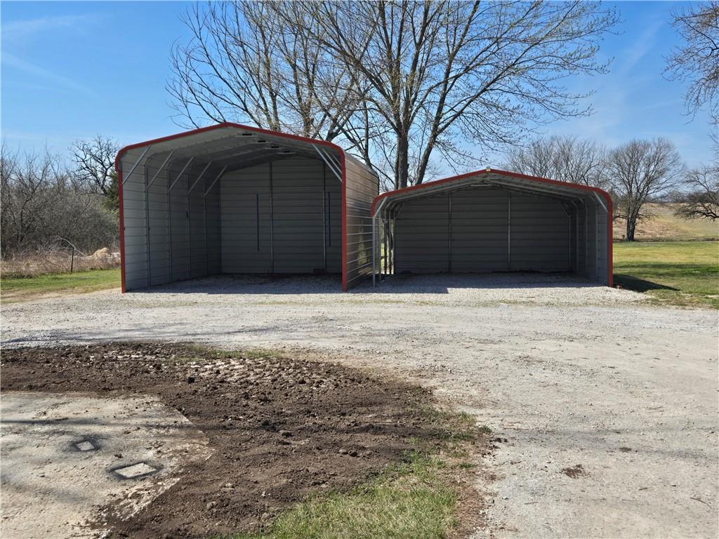 If you are looking to move to the country but stay on a blacktop road with 5+/- acres, this is the one for you! Three bedrooms and two and one half baths in a tri-level home with a metal roof. The house features two brick fireplaces with woodburning inserts to keep the house cozy on cold winter days. There is a hot tub on the covered back deck. Did I mention the two carports? One is 20'x18' and is 9' tall, the other is 25'x18' and is 13' tall. There is also a two car garage with plenty of shelving and workbench areas and a half bath as well. The kitchen comes with hard surface countertops and double stainless steel sink. The laundry room is on the same level as the bedrooms. Newer windows throughout. Set up an appointment and come take a look at this little farm home.