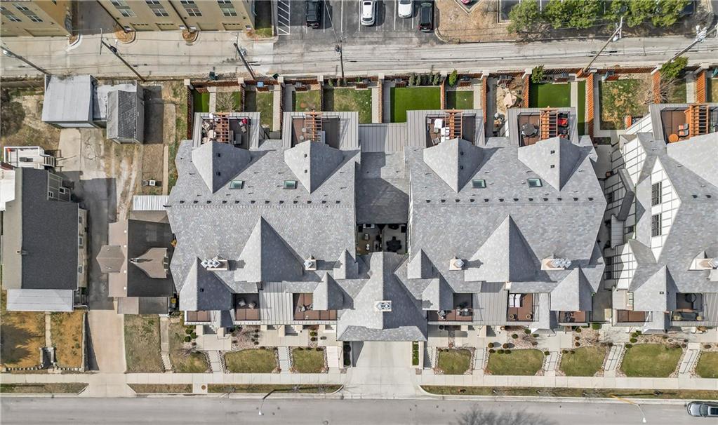 Sophisticated living with the ease and polish of newer construction, this exceptional townhome offers nearly 4,500 square feet with 4 bedrooms and 6 bathrooms (4 full, 2 half), plus upgraded finishes and thoughtful enhancements throughout. The main level features soaring ceilings, abundant natural light, a cast-stone gas fireplace, and a seamless dining space that flows into a show-stopping kitchen and out to a private outdoor entertaining and dining area. The kitchen is designed to impress with an oversized quartz island, custom walk-in pantry, beautiful custom cabinetry, two custom glass floating shelves, and premium Wolf/Sub-Zero appliances. The main-floor primary suite is complete with a luxurious en suite bath, a generous walk-in closet with pull-down clothing bars, washer/dryer hookups, and a private entrance to peaceful green space. Recent improvements elevate the home even further, including upgraded primary shower tile on the surround and floor with a floating bench, refreshed paint on walls and trim throughout, added insulation, custom window shades throughout, and upgraded Kohler comfort-height skirted toilets in the primary bath and powder room. Upstairs, the second level is set up a second living/media area and a bar with sink and refrigerator. Two guest bedrooms each offer their own three-piece bath, generous closets, and private balcony access, and a skyline rooftop deck. Additional recent upgrades include a custom closet in the level 4 bedroom, a custom glass shower surround in the level 4 bath, Legrand light switches, added backyard trees, and additional ADT security cameras with a Ring doorbell. Amenities include a private fenced backyard, elevator, landscaping and maintenance, and three secured underground parking spaces (one more than typical) in a temperature-controlled garage. This is a rare opportunity to enjoy luxury living just steps from Kansas City’s iconic Plaza district.