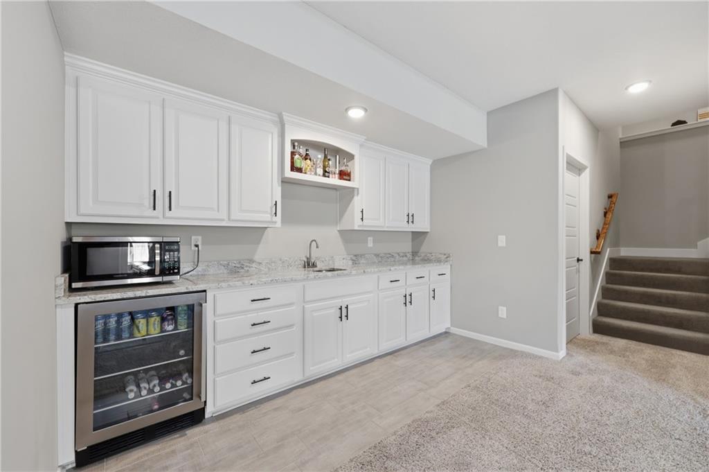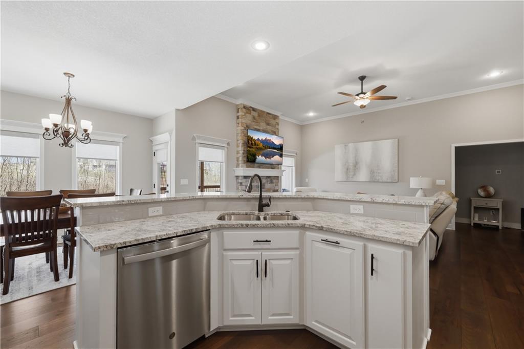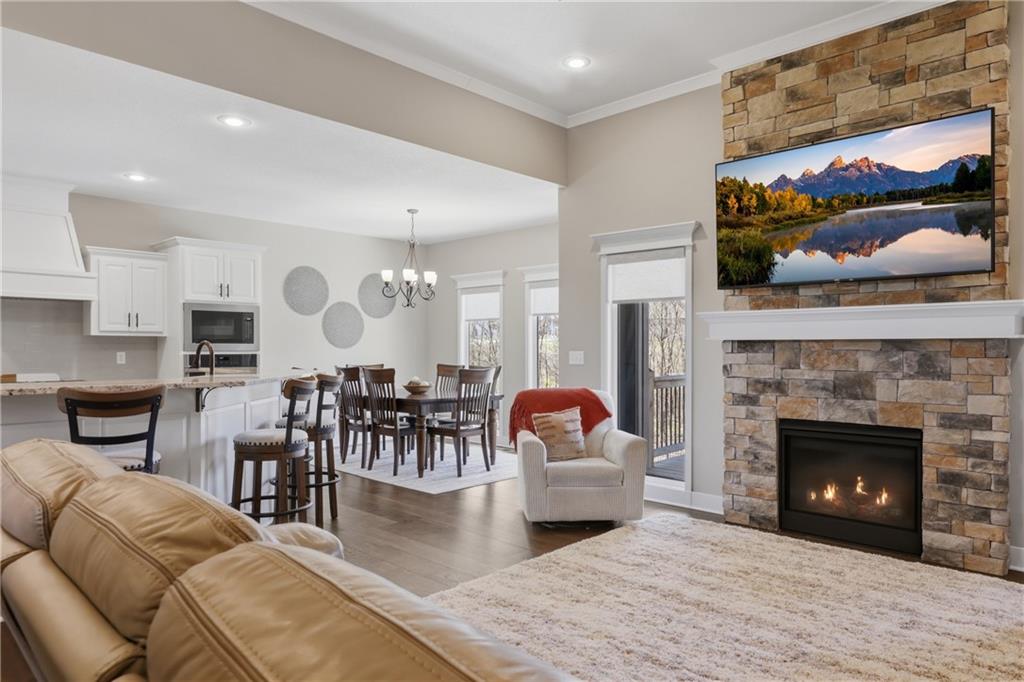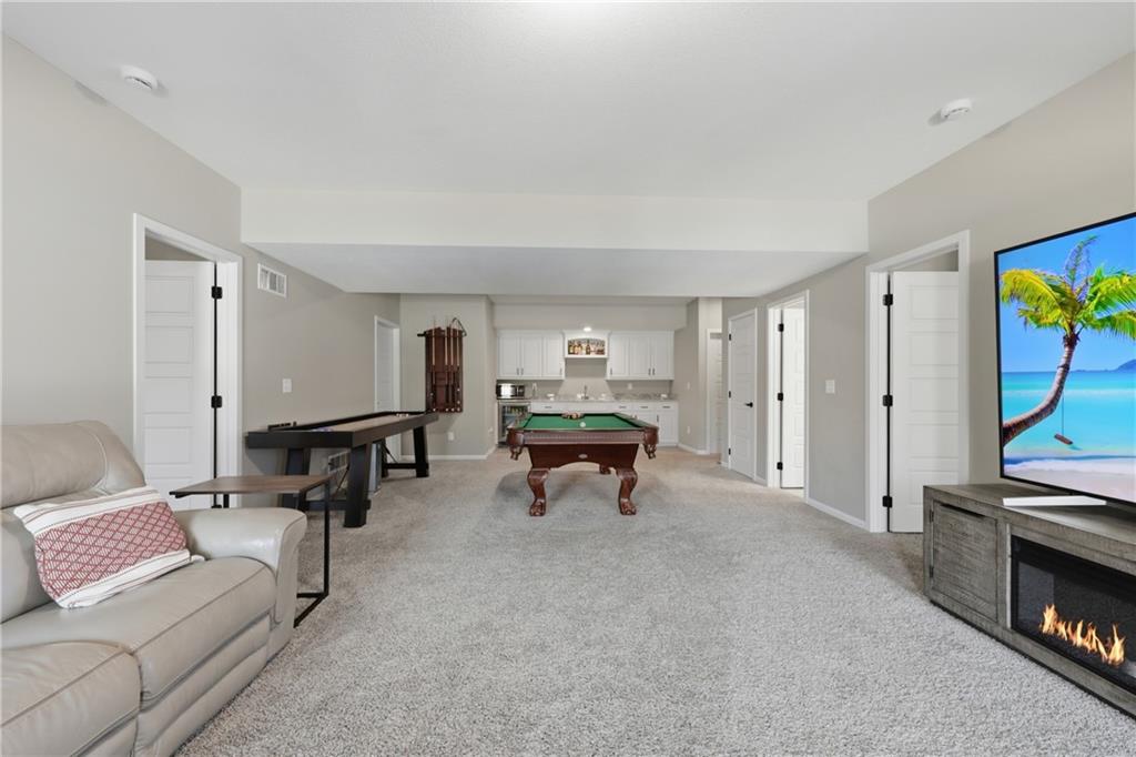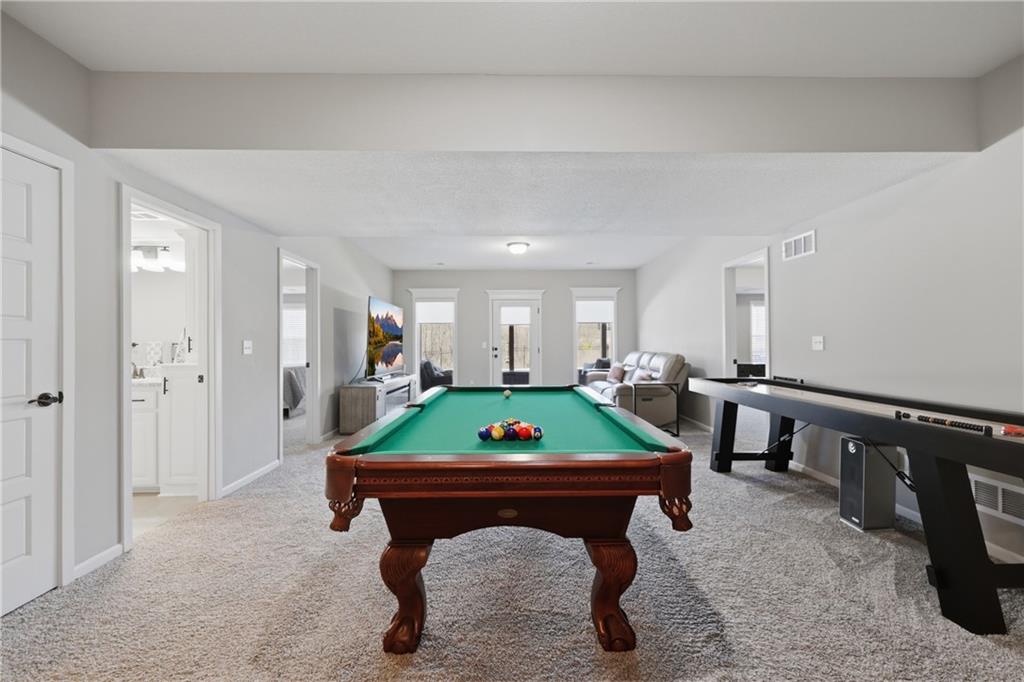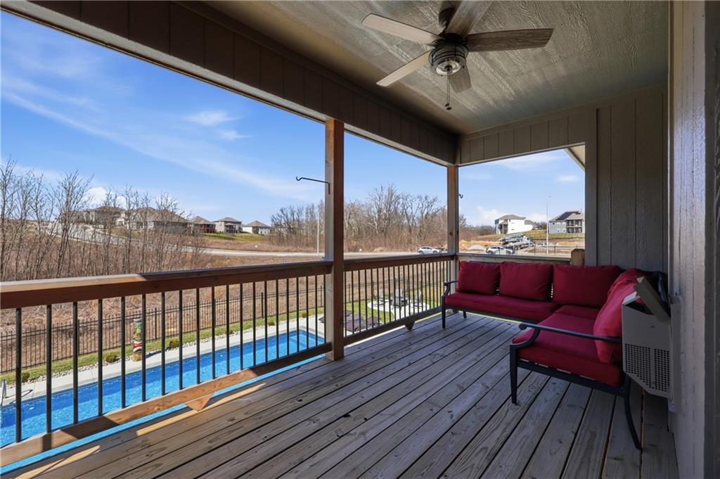 Private back yard oasis featuring a stunning 20 x 40 heated inground pool with diving board, slide and seating bench across shallow end with expanded concrete patio, and fire pit area! The pool and patio area allow you to enjoy a resort style back yard without the wait or any additional expense. All the upgrades and finishing touches have already been completed for you, including custom window coverings, upgraded trim package, and a high quality fencing valued at approximately $13,000.Built with two storage rooms for all your needs. Enjoy peaceful wildlife views in your own backyard. This reverse 1.5 story home is less than 3 years new and located in one of the Northlands most sought after new homes subdivisions. This prime location is just minutes from restaurants, shopping, easy Hwy access, and KCI Airport. Only 1/2 mi. away are NKC and Staley's most highly regarded schools. Thank you for showing our property, we are Dotloop friendly and please submit all contracts PDF.