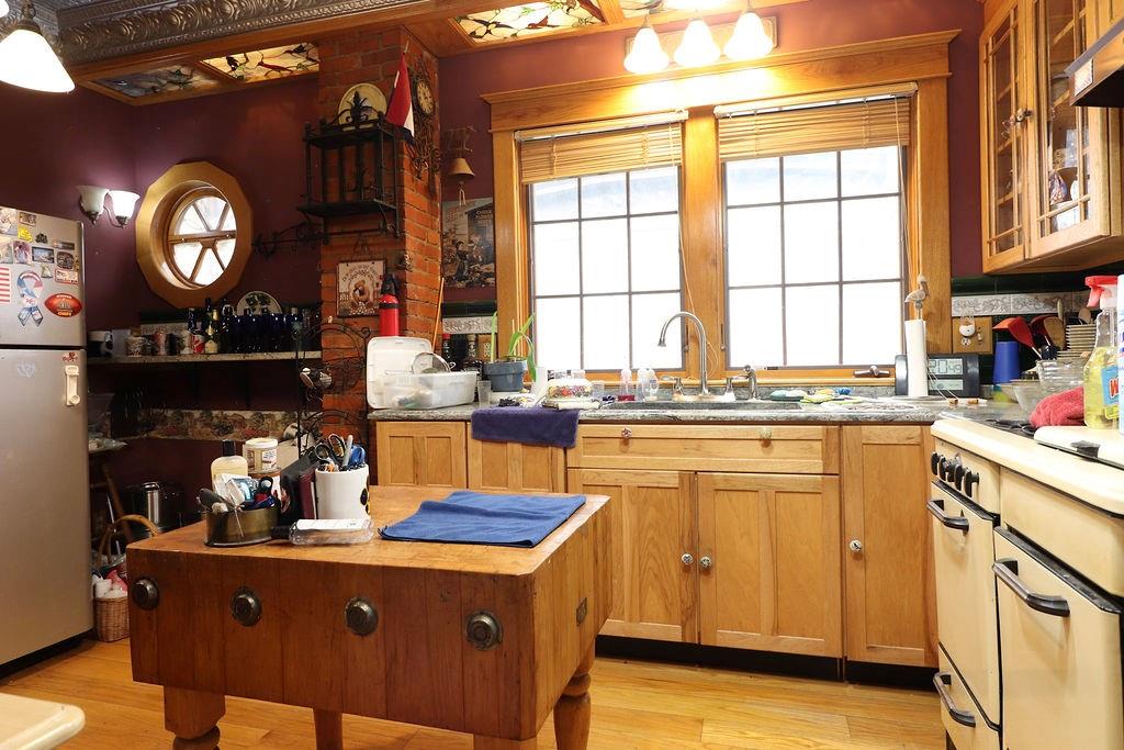 You must tour this home to appreciate its many qualities, such as the wide-plank oak flooring in the kitchen. Craftsman special. Unmolested 1900 house with spectacular kitchen, quite livable as is. You finish restoration to your taste. Unique stove that stays with the property. Stained glass in the kitchen. An intimate top porch and a front porch. The past owner was an avid gardener. The lower level has a cellar, a 1/2 bath, and a walk-out with an array of windows for plants. Can be an additional non-confirming 3rd bedroom. Home needs your finishing touches to make it one of the best of the best on Bell Street.