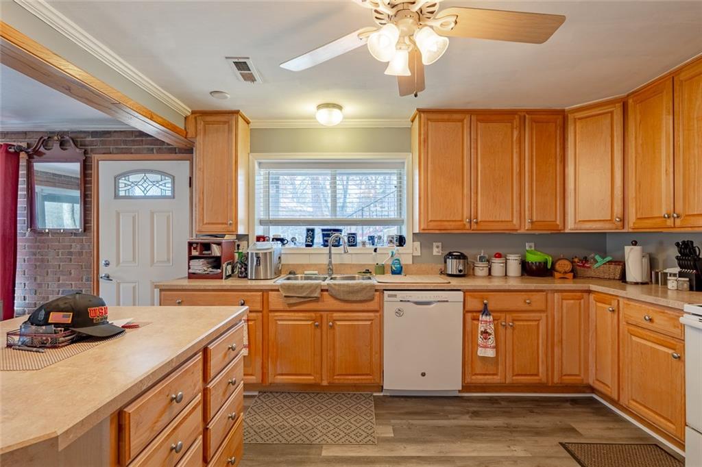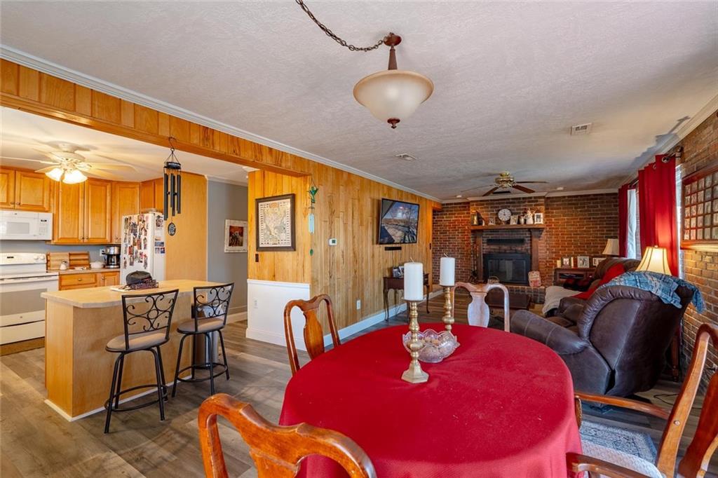 Nestled at the 8 MM in Buck Creek Cove, this lakefront retreat offers the best of both worlds—big protected cove and year-round water. If you’ve been waiting for that “this is the one” feeling, this might be it. This beautiful all brick home with detached 2 car garage has been thoughtfully updated with major improvements you’ll truly appreciate. The main level features brand-new LVP flooring and new windows that fill the space with natural light while boosting energy efficiency. Central heating and cooling have been added for year-round comfort, making lake living easy in every season. Both bathrooms have been completely remodeled with fresh, modern finishes. In the kitchen, you’ll find a new dishwasher & garbage disposal, ready for entertaining after long days on the water. The big-ticket items? Already handled. Updates include a new pressure tank on the well, new septic pump, aerator, and laterals, plus a new shallow well pump on the dock—giving you peace of mind so you can focus on enjoying the lake. Relax outside on the screened in patio or step down to the dock for all your summer fun. Just a short boat ride away from Shady Gators, Tap & Grill & Franky & Louies