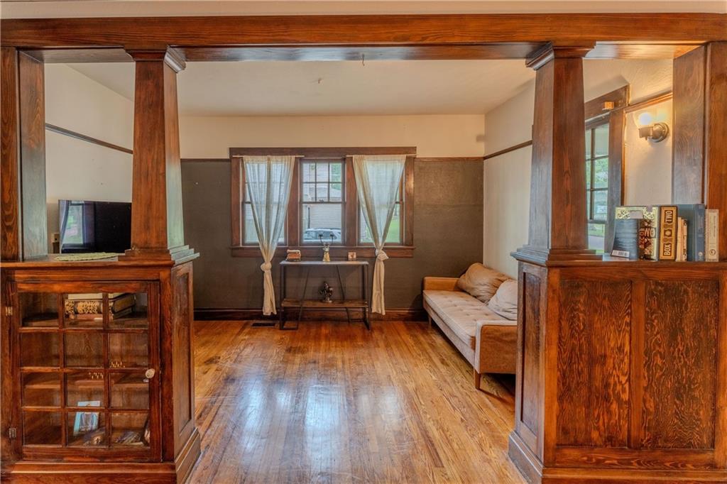 Back on the Market! Upstairs Bedrooms Freshly Painted & Some Repairs Completed. Down a Red Brick Road in Chanute, Kansas You’ll Find this 1925 Renovated 2493 sq ft “Old Home”. This 4 Bedroom 3 Updated Bathroom Home Features Hardwood Floors Throughout the First Floor Living Spaces, Tile in the Bathrooms, and Carpet in All Bedrooms. You’ll Enter From the Covered Front Porch Into the Living Room with a Gas Burning Fireplace and Wooden Bench with Storage. There is a Sitting Area to the Right Separated by Built in Cabinets. Thru the Arched Opening You’ll Find a Formal Dining Room with a Window Bench (with More Storage) and a Built in Buffet. At the Back of the Home You’ll Find an Eat-In-Kitchen with a Large Peninsula, Custom Cabinetry with Lots of Bonus Features, Corian Countertops, and All Appliances are Included. There is a First Floor Bedroom/Office with French Doors, a Full Bathroom with Walk In Shower and Laundry Area. Upstairs You’ll Find a Large Master Bedroom with En-suite, 2 More Bedrooms, another Bathroom, and So Much Closet and Storage Space. The Home Has Been Freshly Painted Inside and Out! Updated Plumbing and Gas Lines, New Light Fixtures, Smart Thermostat, and So Much More! There is a Partial Basement. Step Out Back Onto the Covered Deck and Walkway Leading to a 1080 sqft Detached Garage with an Office. You’ll Fit Both Cars, All Your Tools, and Still Have Your Office/Hobby Room. The Fully Privacy Fenced in Yard Has Plenty of Room to Play and Entertain. Move Right in and Enjoy the Perfect Combination of Old World Charm with Modern Conveniences.