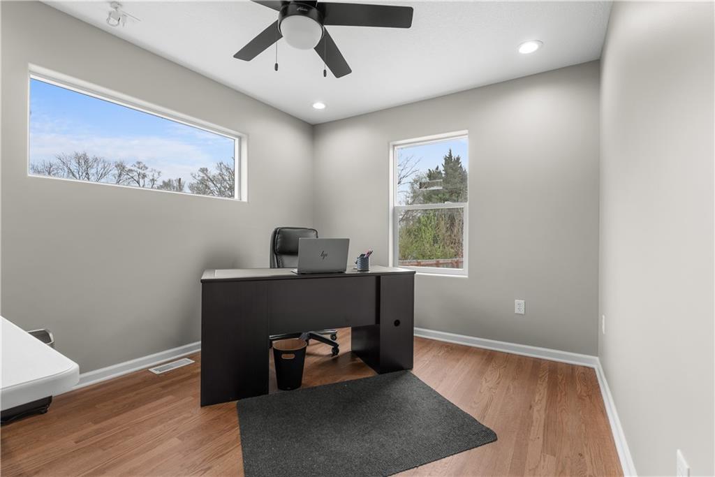 Fully remodeled commercial office building located along high-traffic E 23rd St with strong visibility and access. This property has served the Independence community as a commercial space for over 60 years and has been updated from top to bottom. Recent improvements include new roof, HVAC system, water heater, plumbing, electrical, and all interior finishes. The space features two private offices, updated bathroom with granite countertops, and a kitchen area also finished with granite surfaces. New flooring throughout provides a clean, professional interior suitable for a variety of business uses. Additional features include a garage and storage area below, offering functional space for operations or inventory. The adjacent parcel is included, effectively doubling the lot size and providing potential for additional parking or future use. Located on a busy corridor with consistent traffic exposure. Parking is situated at the rear of the building for convenience.