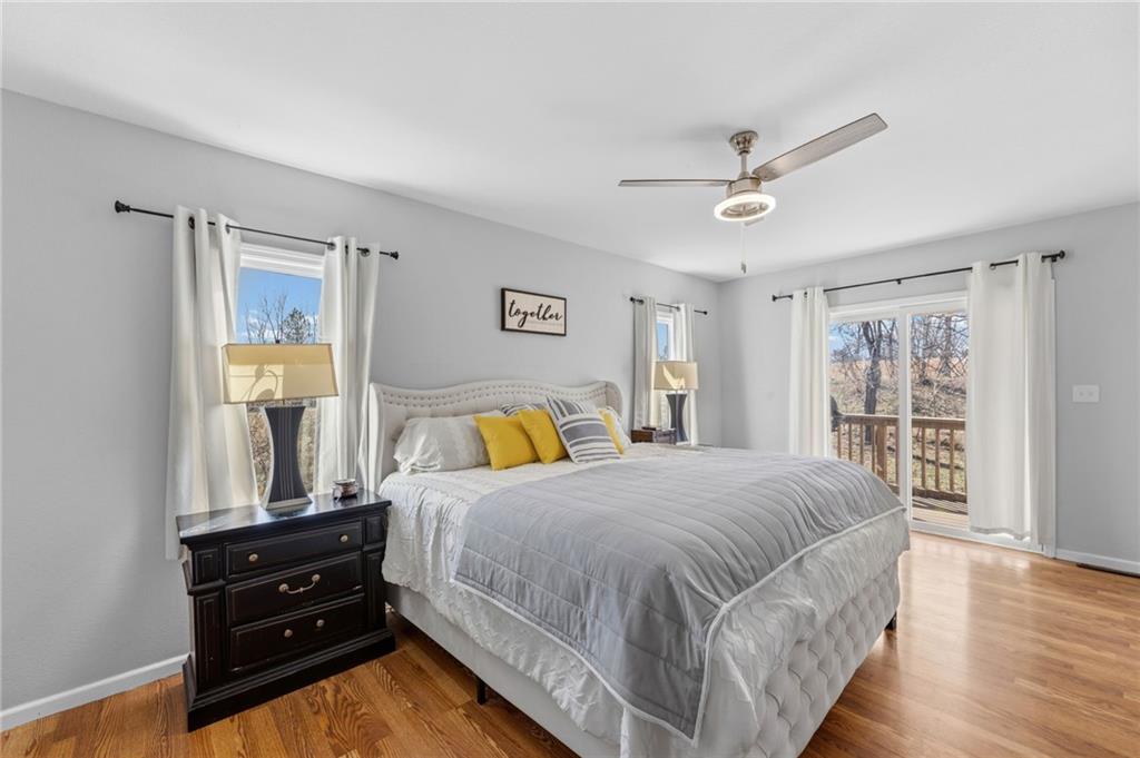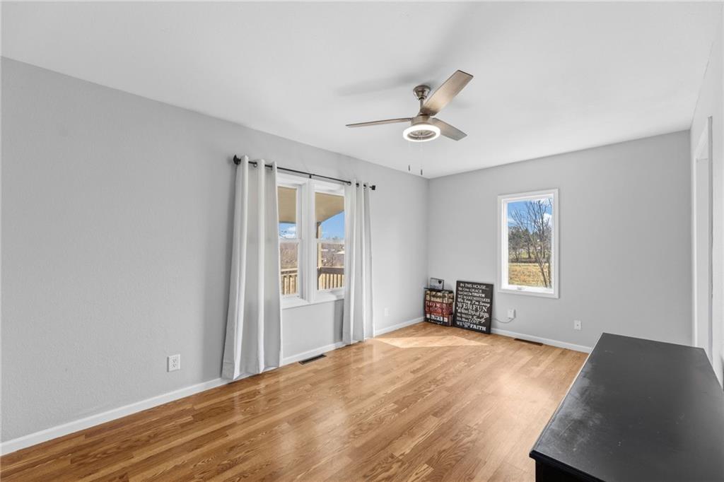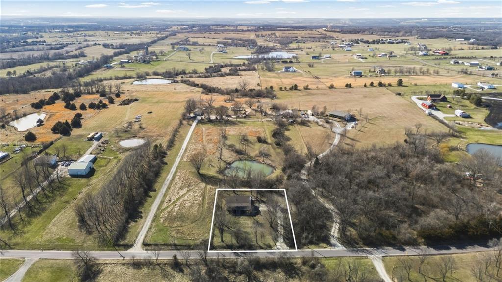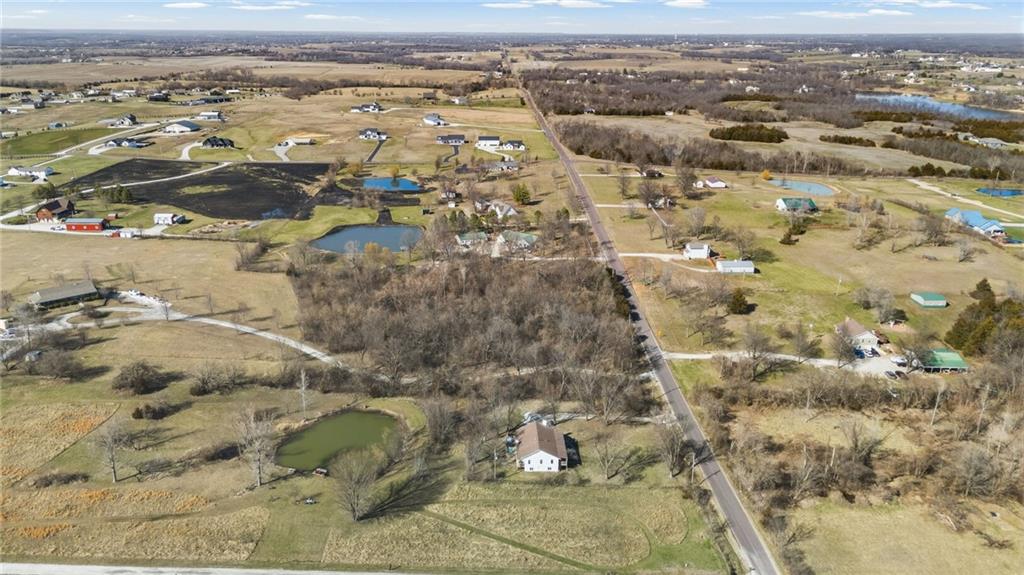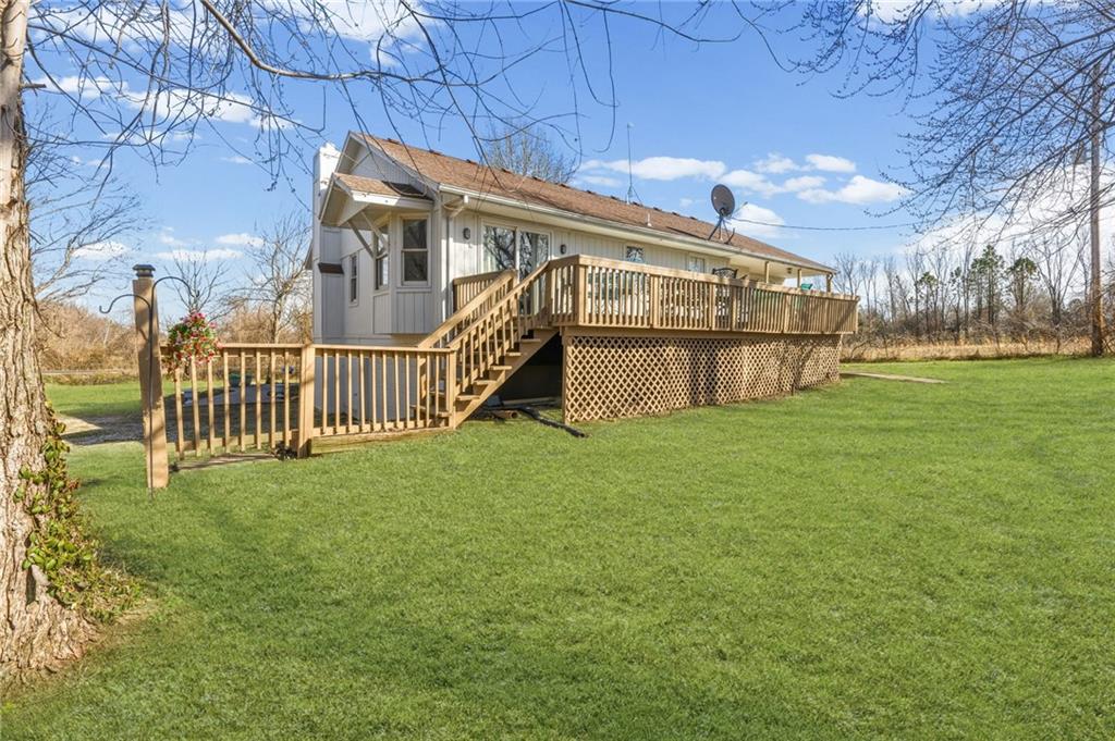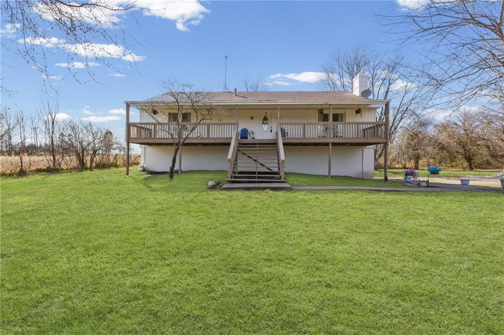 Welcome home to your own private retreat! Tucked back in the trees- sitting on .81 acres, this peaceful property is surrounded by open farmland and shaded by mature fruit trees and berry bushes, offering both beauty and privacy. Enjoy quiet mornings on the massive covered front porch, or entertain on the expansive back deck, accessible from both the living room and the primary bedroom—perfect for relaxing, hosting gatherings, or enjoying evening sunsets. Inside, you’ll find a bright, open floor plan filled with natural light, creating a warm and inviting atmosphere throughout. The home features five generously sized bedrooms, including two on the main level and three additional bedrooms with a full bath on the lower level. The fifth bedroom offers walk-out access, making it ideal for guests, extended family, a home office, or a private studio—perfect for multi-generational living or flexible use of space. This is a rare opportunity to own a private, nature-filled retreat with room to spread out and enjoy peaceful surroundings. A brand-new driveway entrance will be installed for added convenience. INCREDIBLE LOCATION! Basehor-Linwood School District, Leavenworth County. Minutes from highway access! Country vibes- minutes from everything! Come see this hidden gem for yourself!
