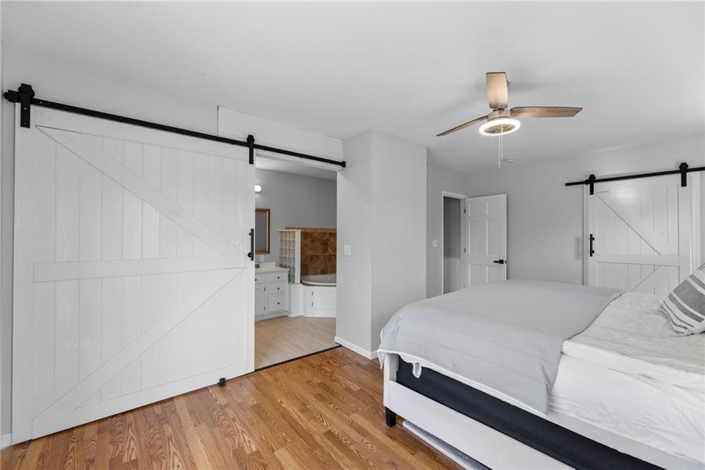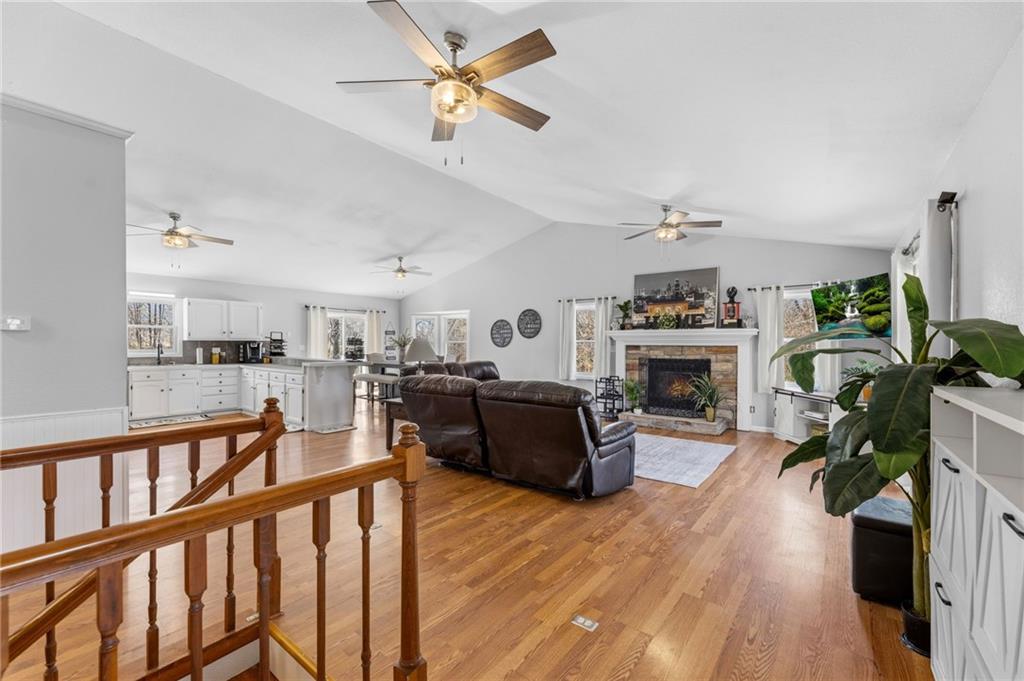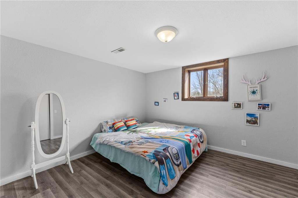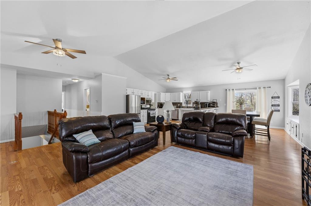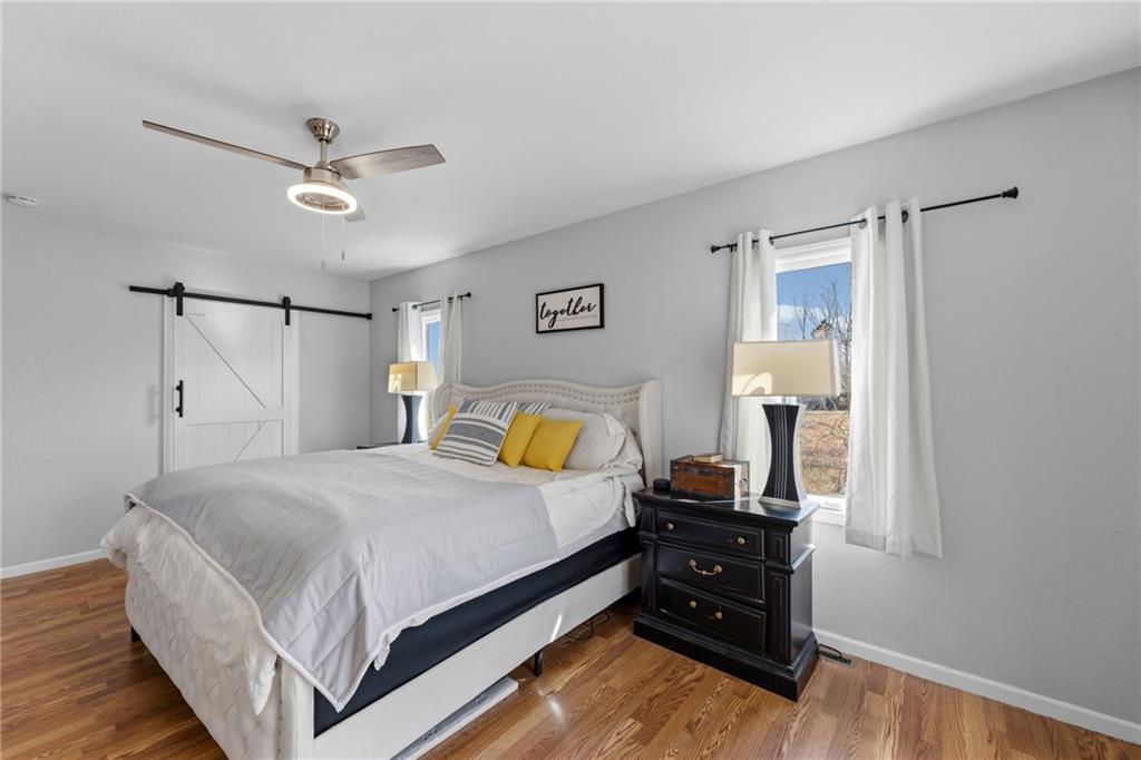 Welcome home to your own private retreat! Tucked back in the trees- sitting on .81 acres, this peaceful property is surrounded by open farmland and shaded by mature fruit trees and berry bushes, offering both beauty and privacy. Enjoy quiet mornings on the massive covered front porch, or entertain on the expansive back deck, accessible from both the living room and the primary bedroom—perfect for relaxing, hosting gatherings, or enjoying evening sunsets. Inside, you’ll find a bright, open floor plan filled with natural light, creating a warm and inviting atmosphere throughout. The home features five generously sized bedrooms, including two on the main level and three additional bedrooms with a full bath on the lower level. The fifth bedroom offers walk-out access, making it ideal for guests, extended family, a home office, or a private studio—perfect for multi-generational living or flexible use of space. This is a rare opportunity to own a private, nature-filled retreat with room to spread out and enjoy peaceful surroundings. A brand-new driveway entrance will be installed for added convenience. INCREDIBLE LOCATION! Basehor-Linwood School District, Leavenworth County. Minutes from highway access! Country vibes- minutes from everything! Come see this hidden gem for yourself!