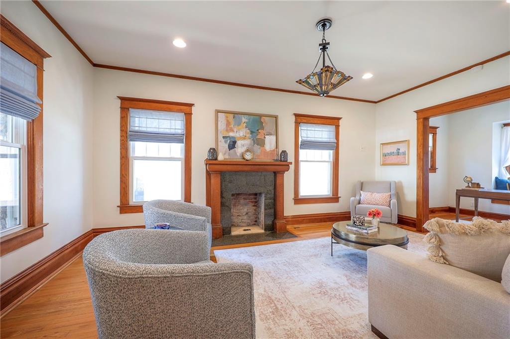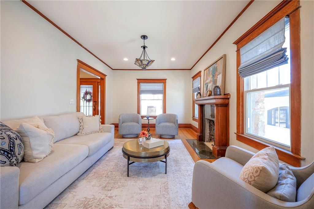 Charming Brookside bungalow just steps from the Trolley Trail and Brookside Triangle Park. This inviting home blends classic character with thoughtful updates in one of Kansas City’s most walkable neighborhoods. A stone front porch welcomes you inside, where beautiful original woodwork, abundant natural light, and charming window seats in multiple rooms create warm, inviting living spaces. The updated kitchen features a pantry and connects easily to the main living areas. A flexible first-floor bonus space works perfectly as a home office, den, or play room. Upstairs offers three bedrooms, including a private en-suite, along with the convenience of second floor laundry. Outside, a covered back deck overlooks a large yard with room to relax, entertain, or garden. Private driveway, 1 car garage. Classic Brookside charm, modern functionality, and a location that places parks, trails, shops and neighborhood favorites just moments from your door.