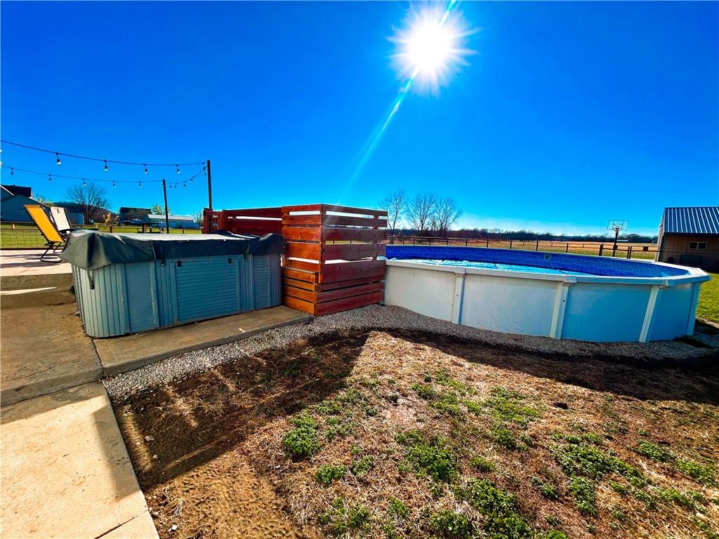Nestled on 10 picturesque acres just outside of LaCygne, KS, this remarkably well-maintained 3-bedroom, 2-bath home offers the perfect blend of peaceful country living and commuter convenience with easy access to 69 Highway. From the moment you arrive, the picture-perfect exterior sets the tone for what awaits inside. Step into a warm and inviting living room where a stunning fireplace serves as the space's beautiful focal point. The kitchen is designed with functionality in mind, offering abundant cabinetry and storage for all your needs. The spacious primary suite provides a true retreat, complete with a walk-in closet and a brand-new Onyx walk-in shower. The full unfinished basement with a walkout door offers endless possibilities, ideal for additional living space, storage, a workshop, or future expansion. Out back, this property continues to impress with an above-ground pool, hot tub, and deck designed for entertaining and relaxation. Just beyond the fenced yard, you'll find a detached garage with RV hookups, perfect for hobbyists, travelers, or extra storage. If you’ve been dreaming of space, privacy, and move-in-ready comfort, this LaCygne property is one you won’t want to miss.
