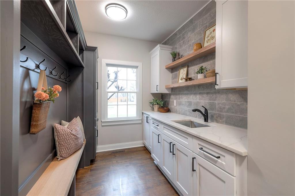Prepare to say WOW! This stunning, professional remodel sits on an A+ LOT, in an A+ LOCATION, and offers the feel of a brand new home at an affordable price. SO many new features include beautiful white oak hardwood flooring, deliberate open concept design with preserved traditional charm, custom carpentry and craftsman details throughout, new kitchen cabinetry and quartz countertops, large butler's pantry and mud room combo, HUGE primary bedroom suite with accompanying walk in closet and spa-like bathroom, laundry room off the primary bedroom, LARGE 2nd floor loft-style living room, big finished basement with wet bar, full bathroom and bedroom, all new interior and exterior paint, and SO MUCH MORE! Totally move-in-ready with newer HVAC, all new fixtures and hardware, all new appliances. Lovely curb appeal with timeless architecture, including a thoroughly beautiful brick exterior in great condition overall. The spacious three car garage with extra stairs to the basement provides an excellent bonus. So many unique features and custom details make this classic style home feel like new! Renovations were properly permitted by the wonderful City of Leawood, and the professional attention to detail and overall quality of work is outstanding. This home is fresh as can be and truly a MUST SEE!