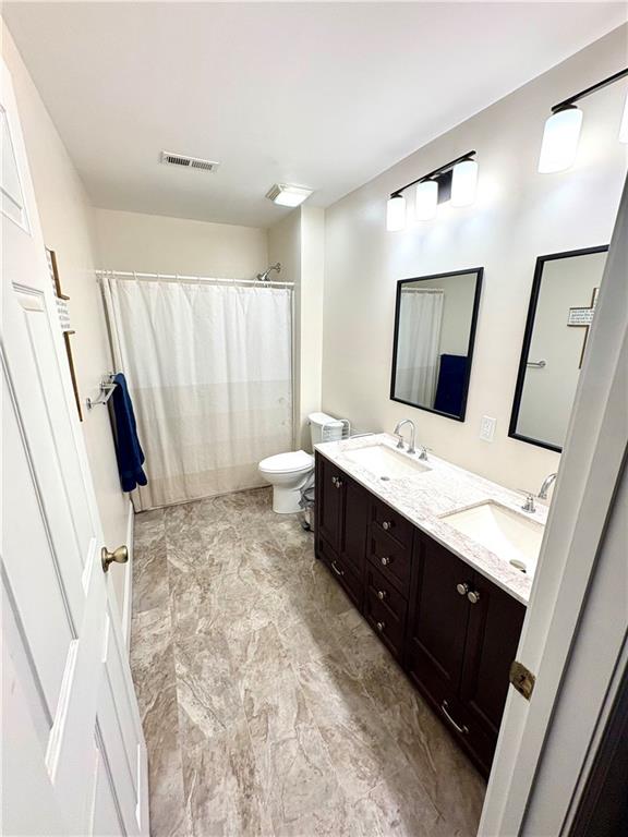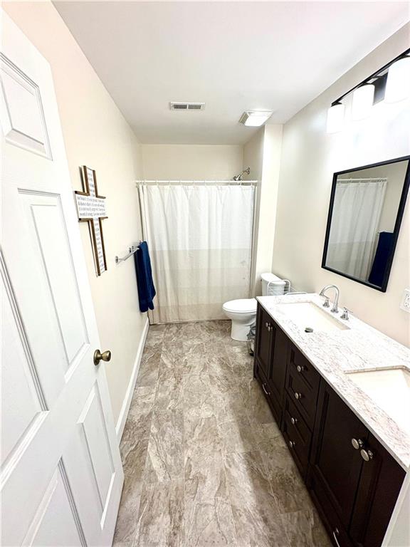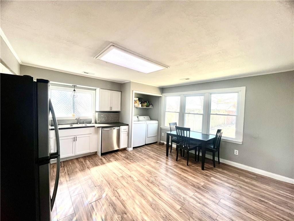 Step into this charming, updated, beautifully refreshed home that blends modern comfort with unbeatable convenience. The covered front porch and the blue siding create great curb appeal. This property features a fully wooden privacy-fenced backyard, perfect for pets, gatherings, or quiet evenings outdoors. A covered front porch welcomes you inside, where you’ll find 10-foot ceilings in the large living room and in the very large primary room (that holds two queen beds and furniture with room to spare) and all-new neutral paint that creates a bright, cohesive feel throughout. The completely remodeled bathroom stands out with its double sink stone-topped vanity, new tub and shower, updated fixtures, and a clean, contemporary design. It is rare to find a bathroom like this in this sized home. The newer kitchen offers stylish finishes and functional workspace, making everyday cooking a pleasure. Both bedrooms are enhanced with brand-new modern ceiling fans, adding both comfort and style. Major systems have been updated, including a brand-new total sewage system giving you peace of mind for years to come. The HVAC system is only eight years old. The sewage has a no clog lifetime warranty that is transferrable. A convenient doggie door leads from the home to the back patio, making the fenced yard easily accessible to pets. Home is just five minutes from Mizzou, offering quick access to campus life, downtown amenities, and Columbia’s vibrant community. Has a large shed with concrete floor for all your storage needs. 2-car gravel parking spot just laid. Please call agent for showing.
