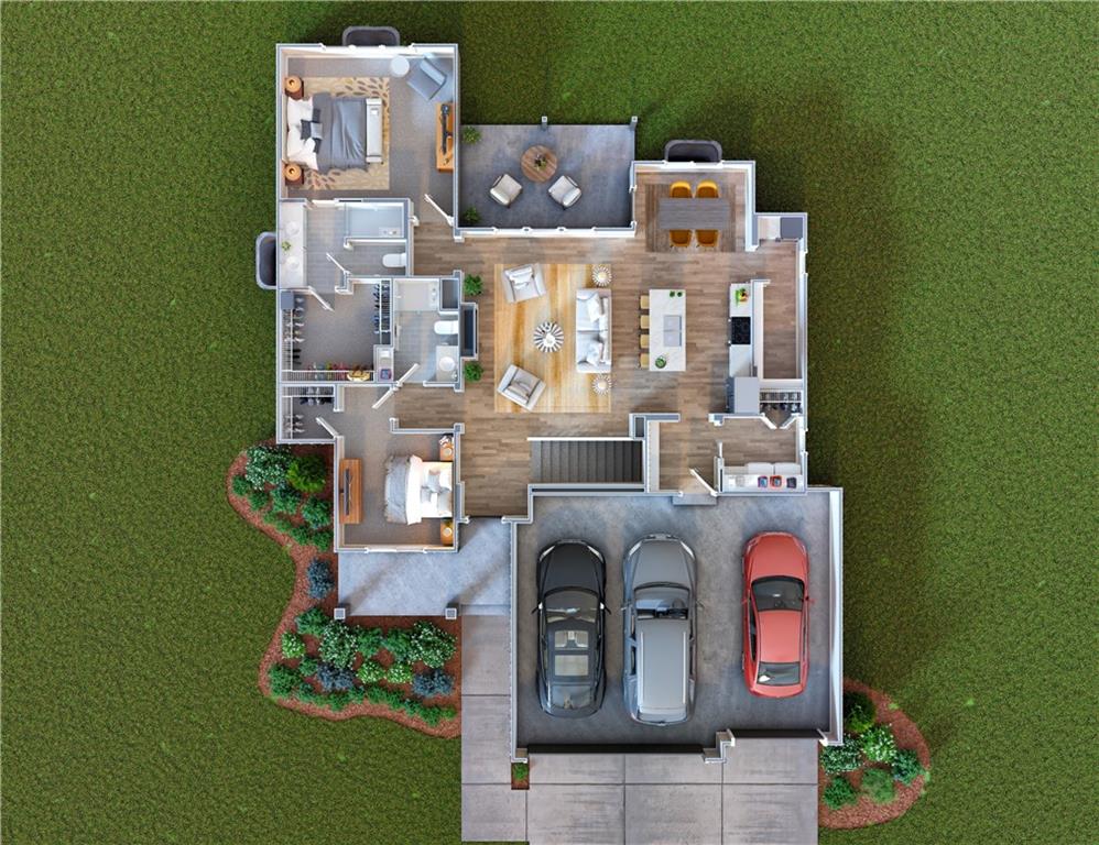 The Hesston floorplan by Drippé Homes. Open concept with tons of natural light! Kitchen furnished with stainless appliances, gas range, hood vent, microwave, quartz countertops, large island with oversized sink and GIANT walk in butlers pantry with built-ins. Two bedrooms on main level with primary opposite other bedrooms. Ensuite features double vanity, tiled walk-in shower, private water closet and gigantic closet. Mudroom and laundry room off garage/kitchen with boot bench. Finished daylight basement with two additional bedrooms and rec room complete with wet bar, ready for hosting the next big game. Cozy up to the fireplace in the living room or enjoy the sunset from covered back deck. Sod and irrigation included. Three car garage and two storage areas in basement provide plenty of storage. Estimated completion July 2026.