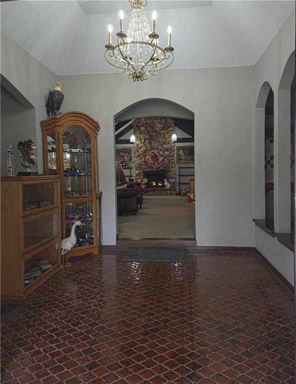 Experience the perfect blend of rustic charm and modern efficiency in this 2,047 sq. ft. home. Situated on a sprawling 32,234 sq. ft. lot, this property offers rare privacy and space. The heart of the home is the expansive living room, featuring soaring vaulted beam ceilings and a majestic custom stone fireplace mirrored by a matching stone feature piece. The "country-sized" kitchen is a chef’s delight, boasting a portable island, walk-in pantry, and premium appliances—including a silent 3-rack Whirlpool dishwasher and breakfast nook with tree-shaded views. The Master Suite is a true retreat with a coffered ceiling, crystal chandelier, and private 3/4 bath with dual shower heads. Two additional oversized bedrooms share a luxury hall bath equipped with a 72" Kohler deep soaking tub. Below, the full walk-out basement offers a massive footprint for future equity, already framed for a non-conforming 4th bedroom and plumbed for a bar and additional bathroom. Mechanical & Exterior Highlights: HVAC: 95% efficient 2-stage system (5 years old) with sanitized ductwork. Windows: Renewal by Anderson (front) and newer double-pane vinyl (rear). Efficiency: Hybrid high-output water heater and LED lighting throughout. Protection: Leaf Filter gutter system with lifetime warranty and a roof inspected in "Good" condition. Extras: Formal dining room, large laundry/mudroom, 2-car garage, and two backyard sheds. Move in with total peace of mind knowing the "heavy lifting"—from the high-efficiency mechanicals to the plumbing stops—has already been handled. This private oasis is designed for those who love to gather, offering space, comfort, and timeless style.
